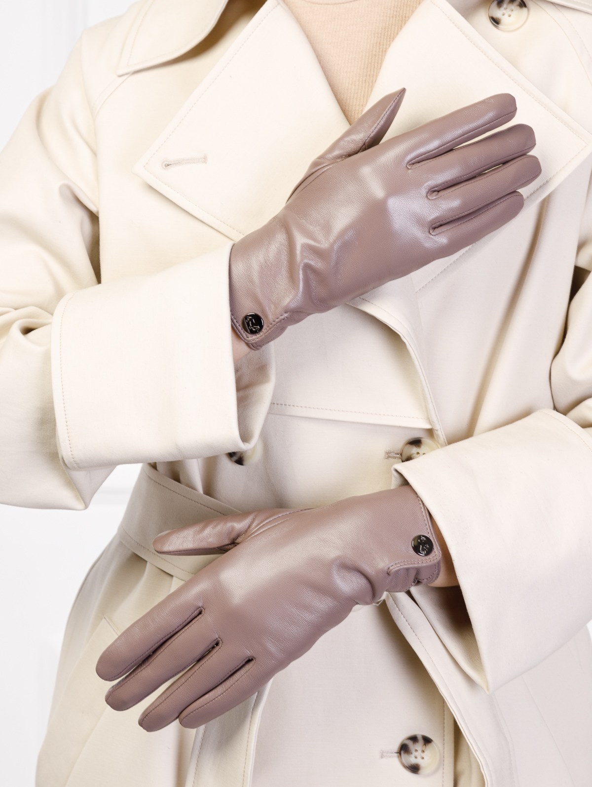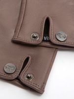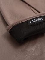 Перчатки женские торговой марки LABBRA из натуральной кожи ягненка. Производство Китай. Подкладка: шелк. Отделка - на лицевой части перчатки разрез с фирменной кнопкой. Длина манжеты от нижней точки большого пальца до края перчаток - 6.5 см. Длина пальцев - средняя.