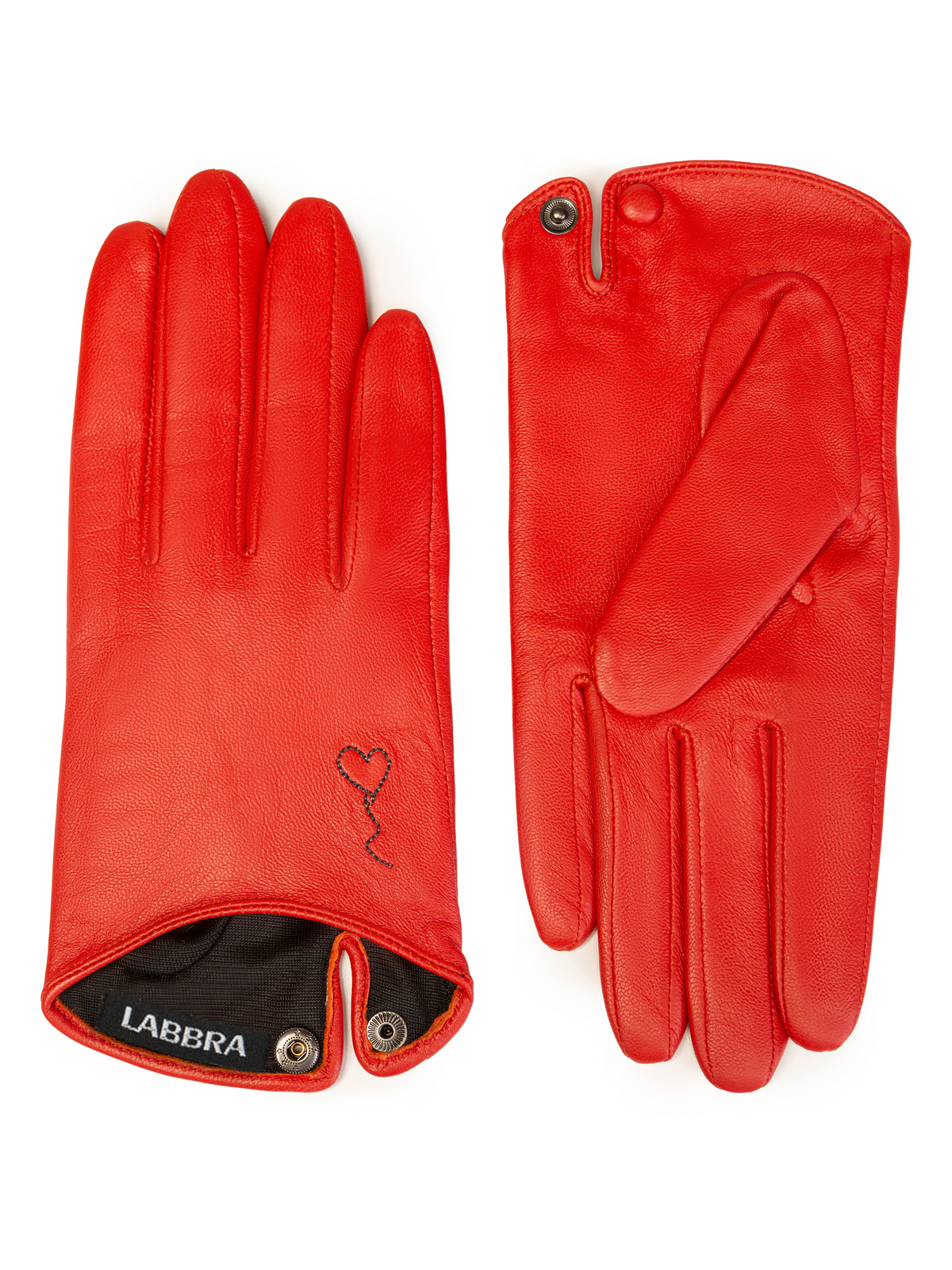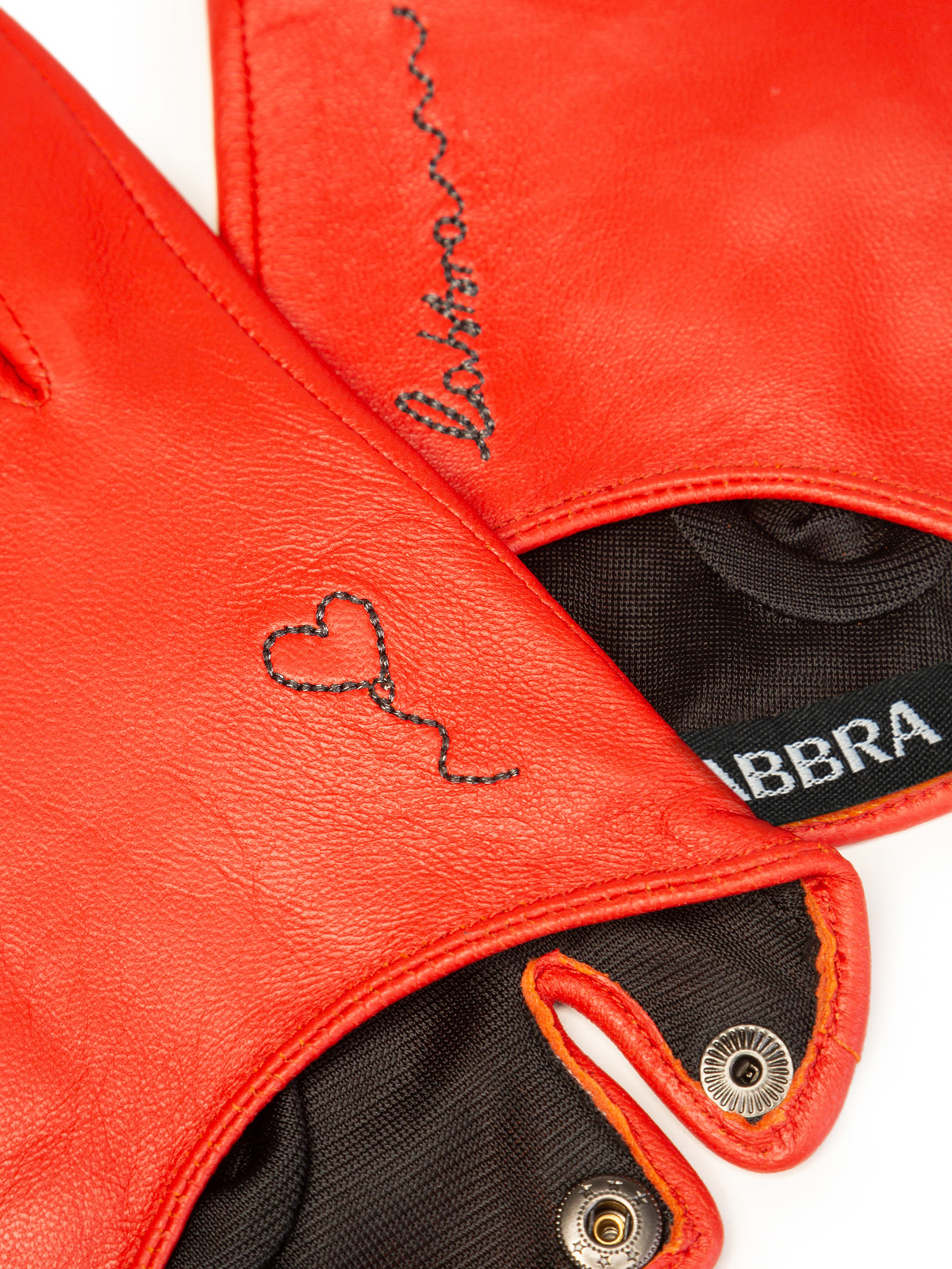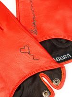 Перчатки женские торговой марки LABBRA производства Китай. Выполнены из натуральной кожи ягненка. Подкладка: шелк. Отделка - несимметричная декоративная вышивка на лицевой стороне контрастного цвета. Разрез на ладонной части с рабочей кнопкой обтянутой кожей. Длина манжеты от нижней точки большого пальца до края перчаток - 25 см. Длина пальцев - средняя.