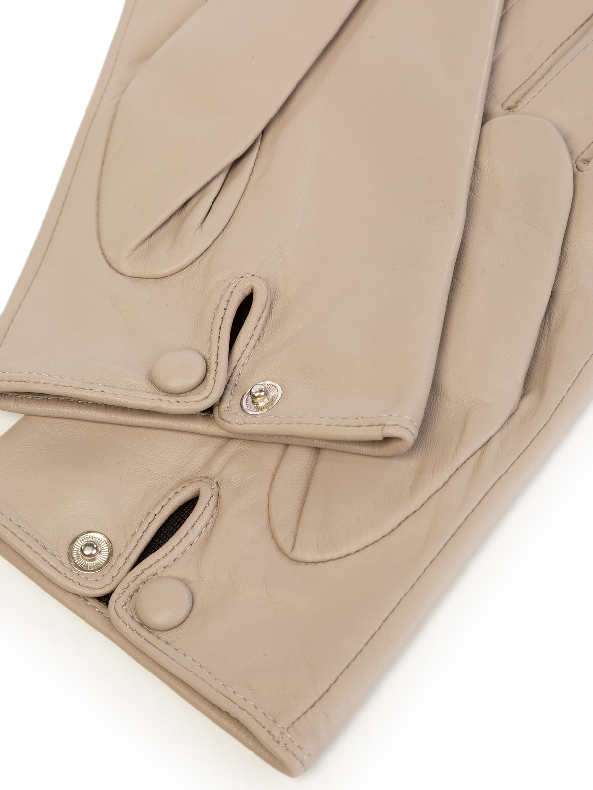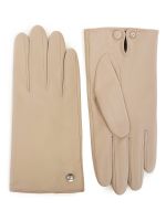 Перчатки женские торговой марки LABBRA производства Китай выполнены из натуральной кожи ягнёнка. Подкладка: шелк. Отделка - фурнитура с логотипом бренда на лицевой части; на ладонной стороне кнопка обтянутая кожей основного цвета. Длина манжеты от нижней точки большого пальца до края перчаток - 3 см. Длина пальцев - укороченные.