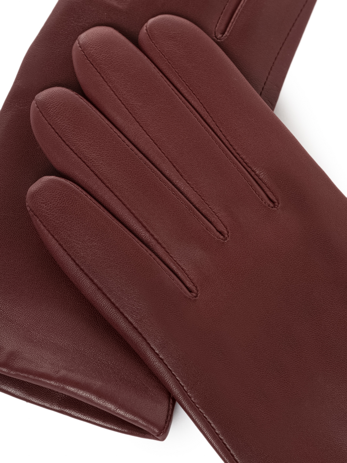 Перчатки женские торговой марки ELEGANZZA выполнены из натуральной кожи ягнёнка и дополнены подкладом из натуральной шерсти. Подгибка изделия выполнена с помощью уникальной технологии объединяющей в себе преимущества ручной техники - эластичность и удобство посадки и машинной - эстетика и безупречная внутренняя отделка. Технология по которой выполнена подгибка на манжете этих перчаток - эксклюзивная разработка и фирменное отличие бренда Eleganzza. Модель со средней длиной пальцев и длиной манжеты от нижней точки большого пальца до края перчаток - 6 см.