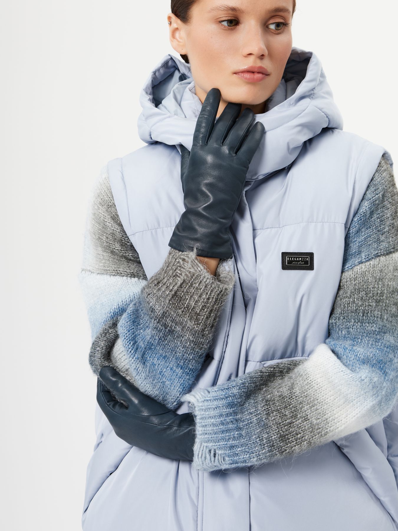Перчатки женские торговой марки ELEGANZZA выполнены из натуральной кожи ягнёнка и дополнены подкладом из натуральной шерсти. Подгибка изделия выполнена с помощью уникальной технологии объединяющей в себе преимущества ручной техники - эластичность и удобство посадки и машинной - эстетика и безупречная внутренняя отделка. Технология по которой выполнена подгибка на манжете этих перчаток - эксклюзивная разработка и фирменное отличие бренда Eleganzza. Модель со средней длиной пальцев и длиной манжеты от нижней точки большого пальца до края перчаток - 6 см.