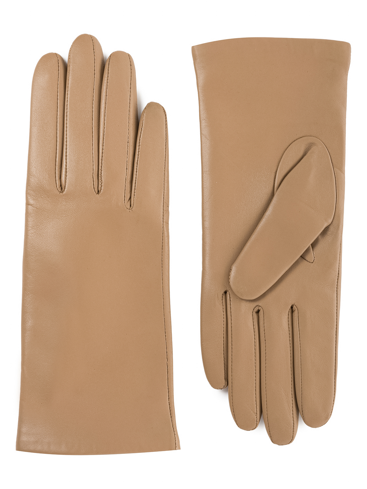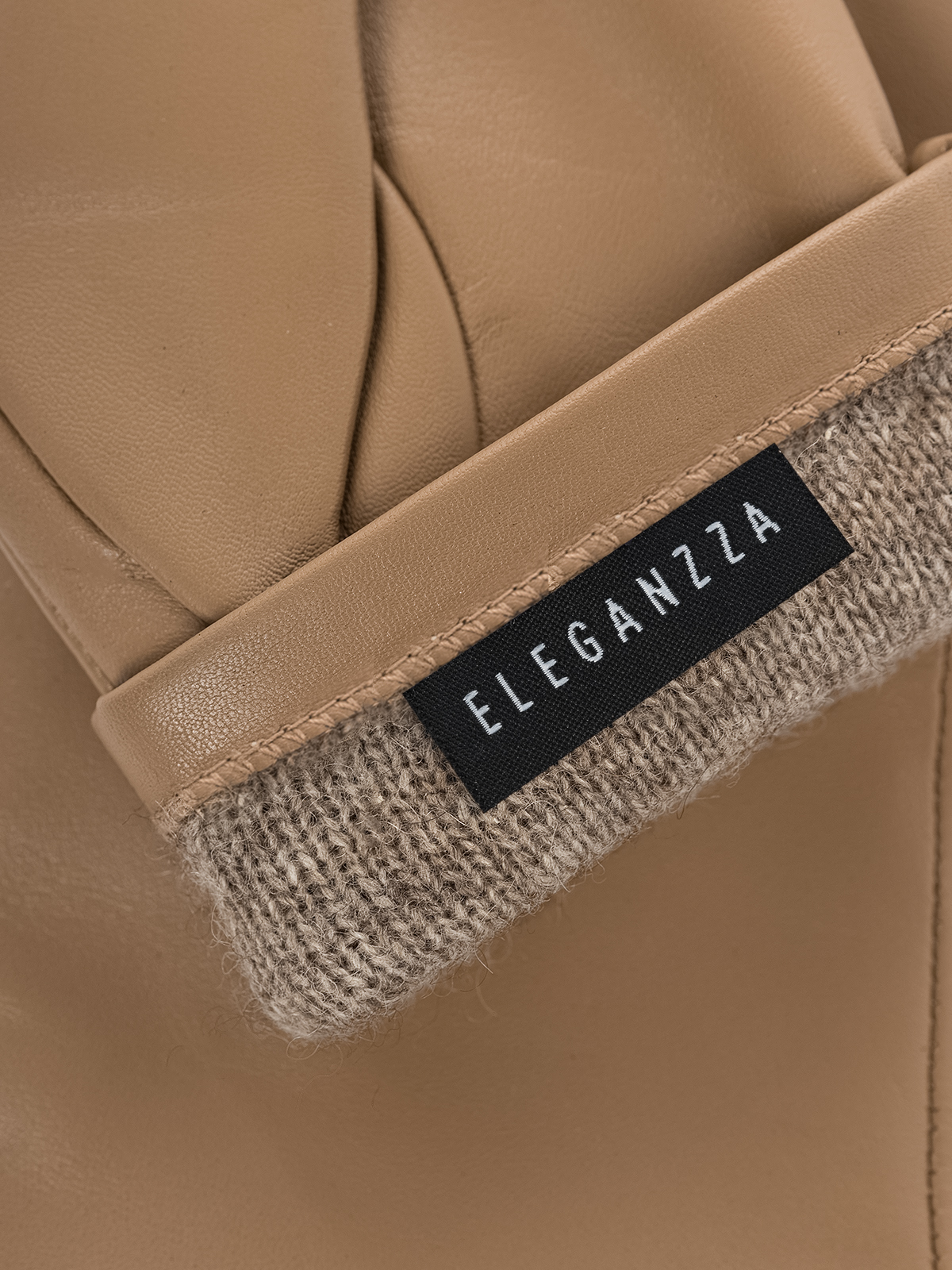 Перчатки женские торговой марки ELEGANZZA выполнены из натуральной кожи ягнёнка и дополнены подкладом из натуральной шерсти. Подгибка изделия выполнена с помощью уникальной технологии объединяющей в себе преимущества ручной техники - эластичность и удобство посадки и машинной - эстетика и безупречная внутренняя отделка. Технология по которой выполнена подгибка на манжете этих перчаток - эксклюзивная разработка и фирменное отличие бренда Eleganzza. Модель со средней длиной пальцев и длиной манжеты от нижней точки большого пальца до края перчаток - 6 см.