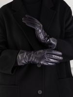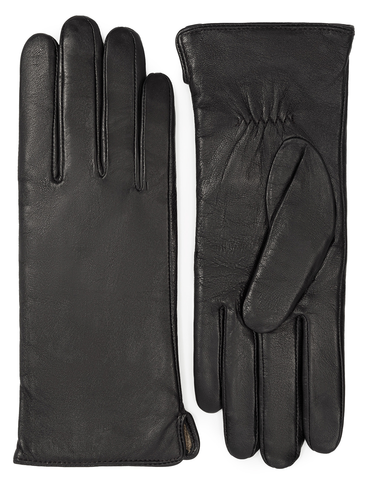 Базовые женские перчатки торговой марки ELEGANZZA из натуральной кожи ягнёнка. Производство Китай. Подкладка: 100% шерсть. Декоративный разрез сбоку по линии мизинца облезчающий вход резинка на ладонной части хорошо фиксирует запястье. Длина манжеты от нижней точки большого пальца до края перчаток - 6 см. Длина пальцев - средняя.