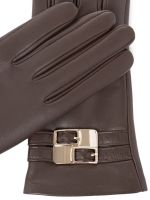 Женские перчатки торговой марки ELEGANZZA. Выполнены из высококачественной натуральной кожи ягненка на мягкой шерстяной подкладке. На манжете украшены декоративными ремешками и дополнены пряжкой геометрической формы. Модель со средней длиной пальцев и длиной манжеты от нижней точки большого пальца до края перчаток - 6 см.