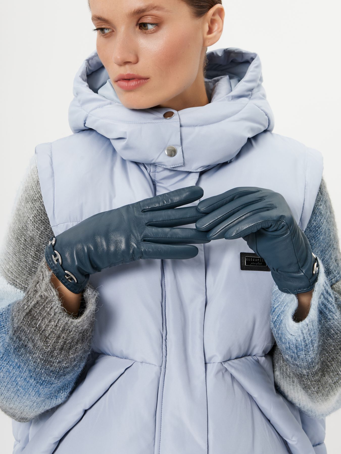 Перчатки женские торговой марки ELEGANZZA. Выполнены из высококачественной натуральной кожи ягненка в трендовом цвете на подкладе из мягкой шерсти. Украшены ажурной продержкой тонким кожаным шнурком с овальной фурнитурой что создает сложный впечатляющий узор на лицевой части перчатки. Деликатная ручная работа. Модель со средней длиной пальцев и длиной манжеты от нижней точки большого пальца до края перчаток - 4.5 см.