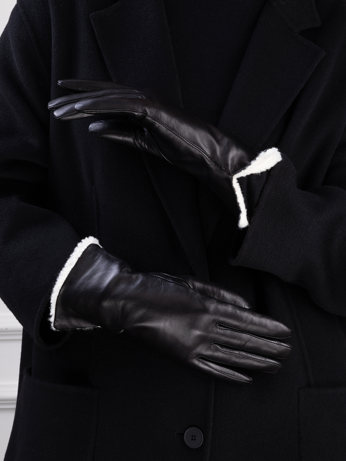 Перчатки торговой марки ELEGANZZA производства Китай выполнены из натуральной кожи ягнёнка. Подкладка: 100% шерсть. Боковой декоративный разрез манжеты и внутренняя часть отворота перчаток - отделка искуственным мехос бежевого цвета. Длина манжеты от нижней точки большого пальца до края перчаток - 6 см. Длина пальцев - средняя.