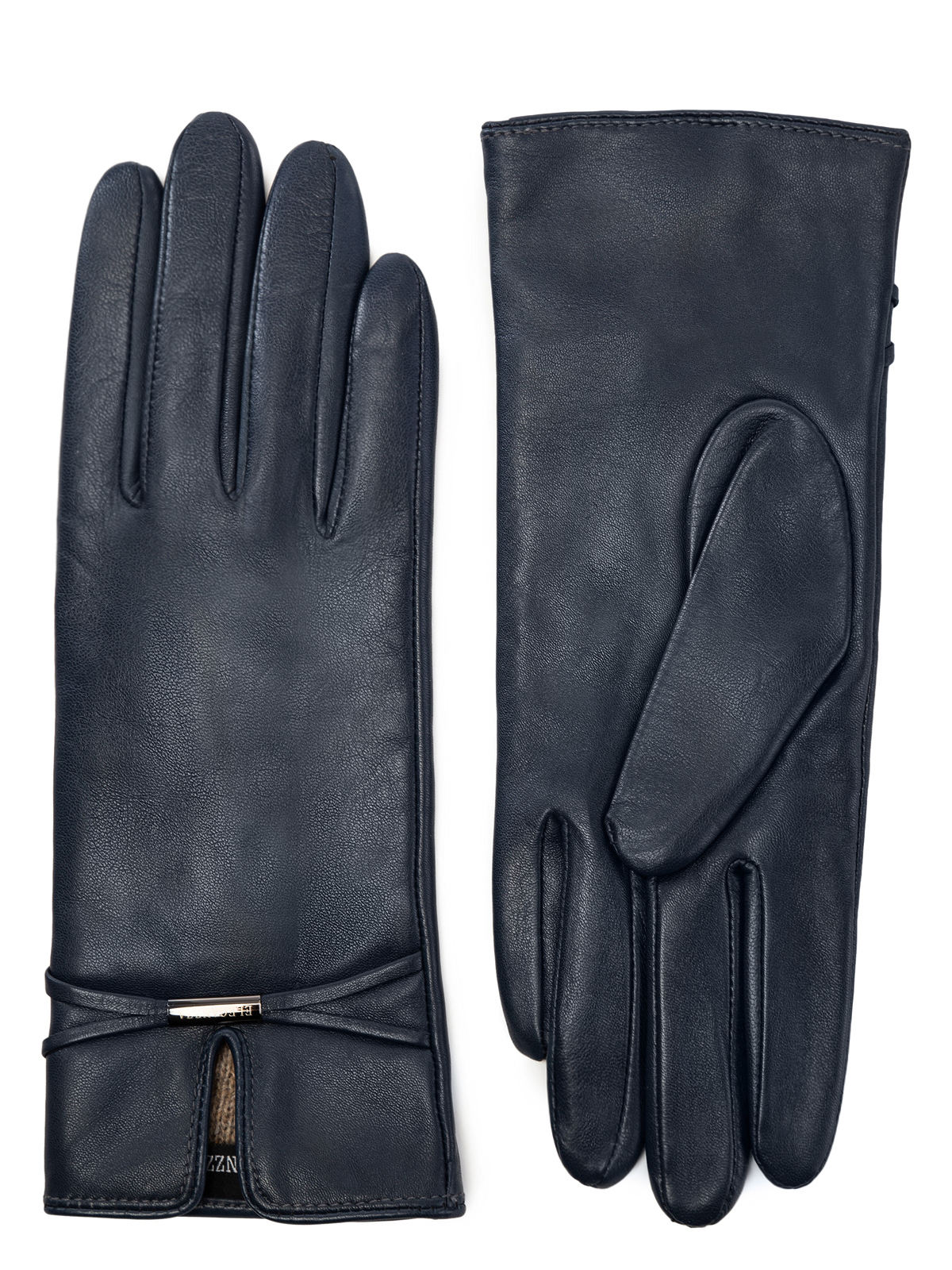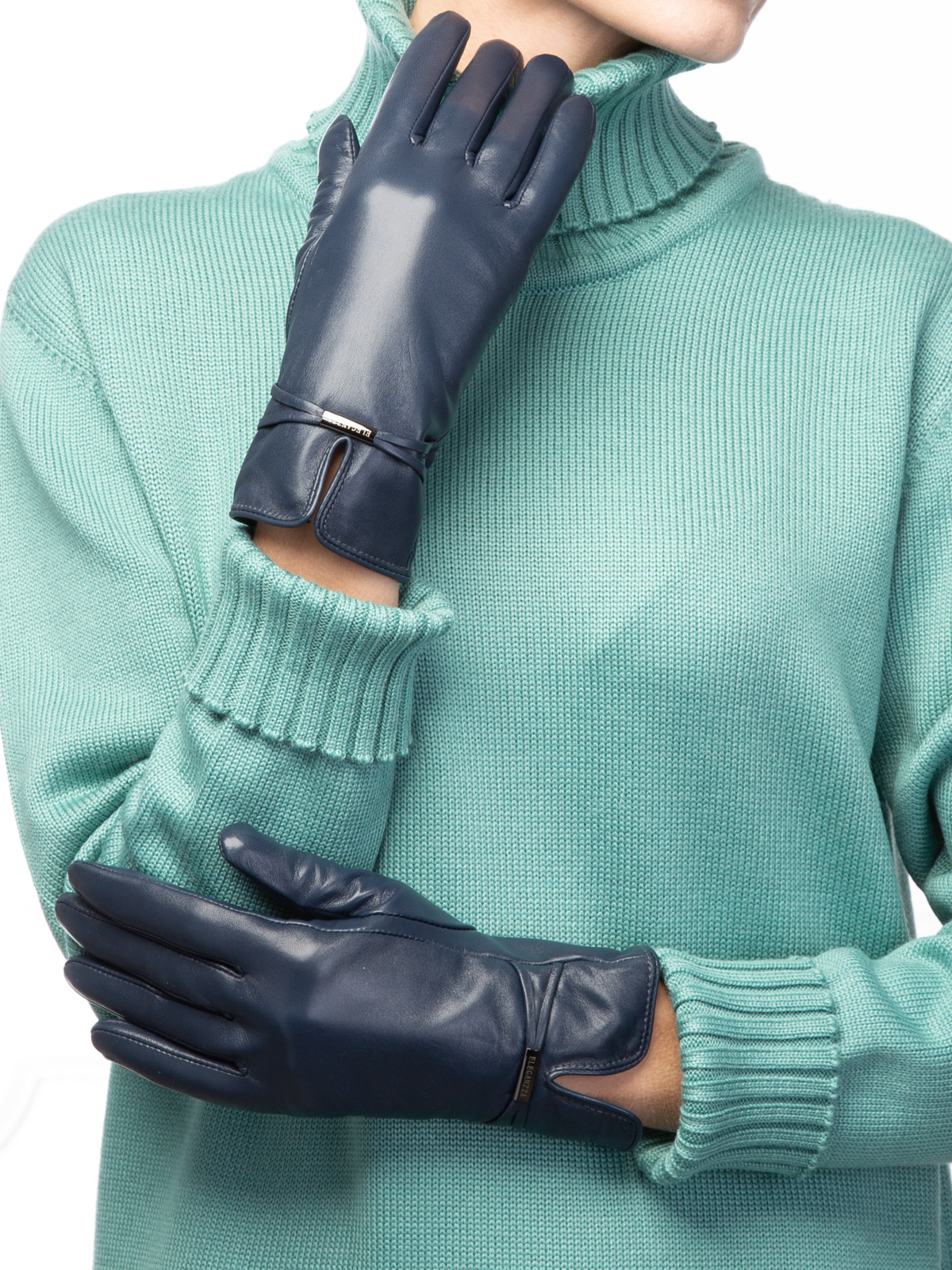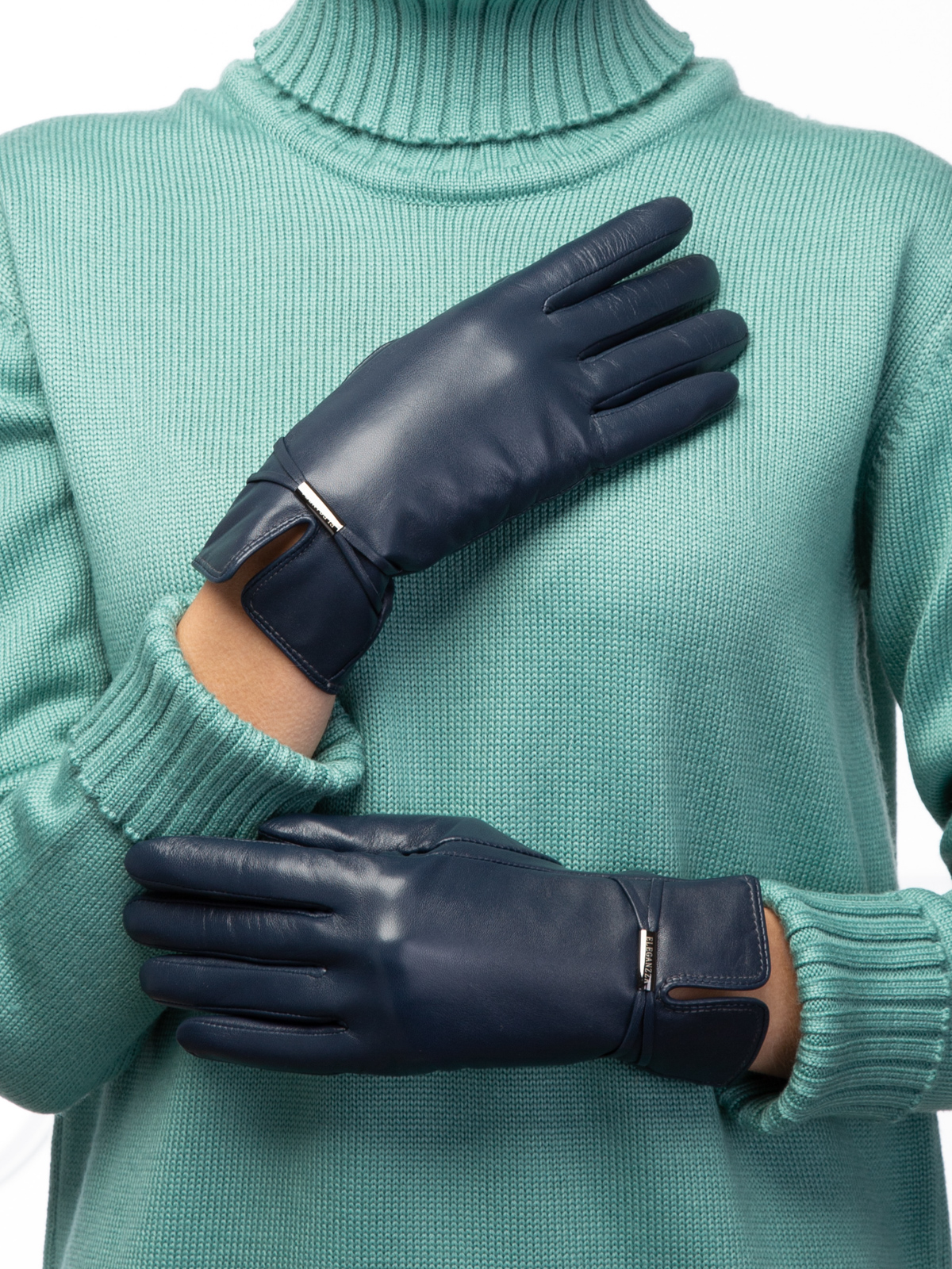 Перчатки торговой марки ELEGANZZA производства Китай выполнены из кожи ягнёнка чёрного цвета. Подкладка: 100% шерсть. Декоративные элементы - фирменная фурнитура на узких кожаных ремнях. Нижний край перчатки и разрез на лицевой стороне окантованы. Длина манжеты от нижней точки большого пальца до края перчаток - 6 см.