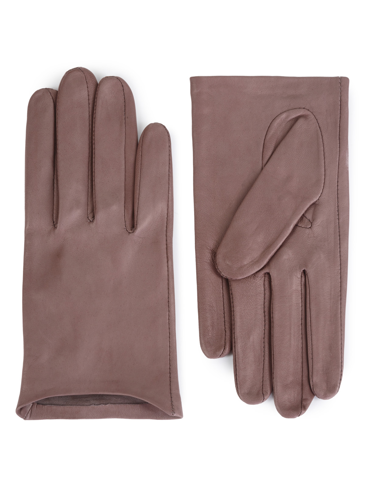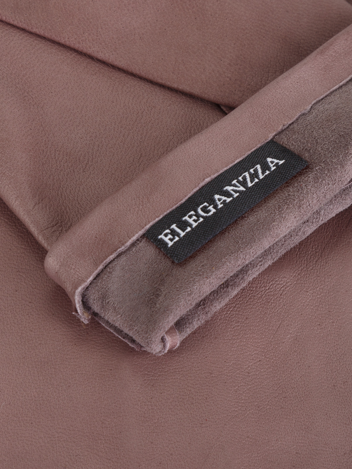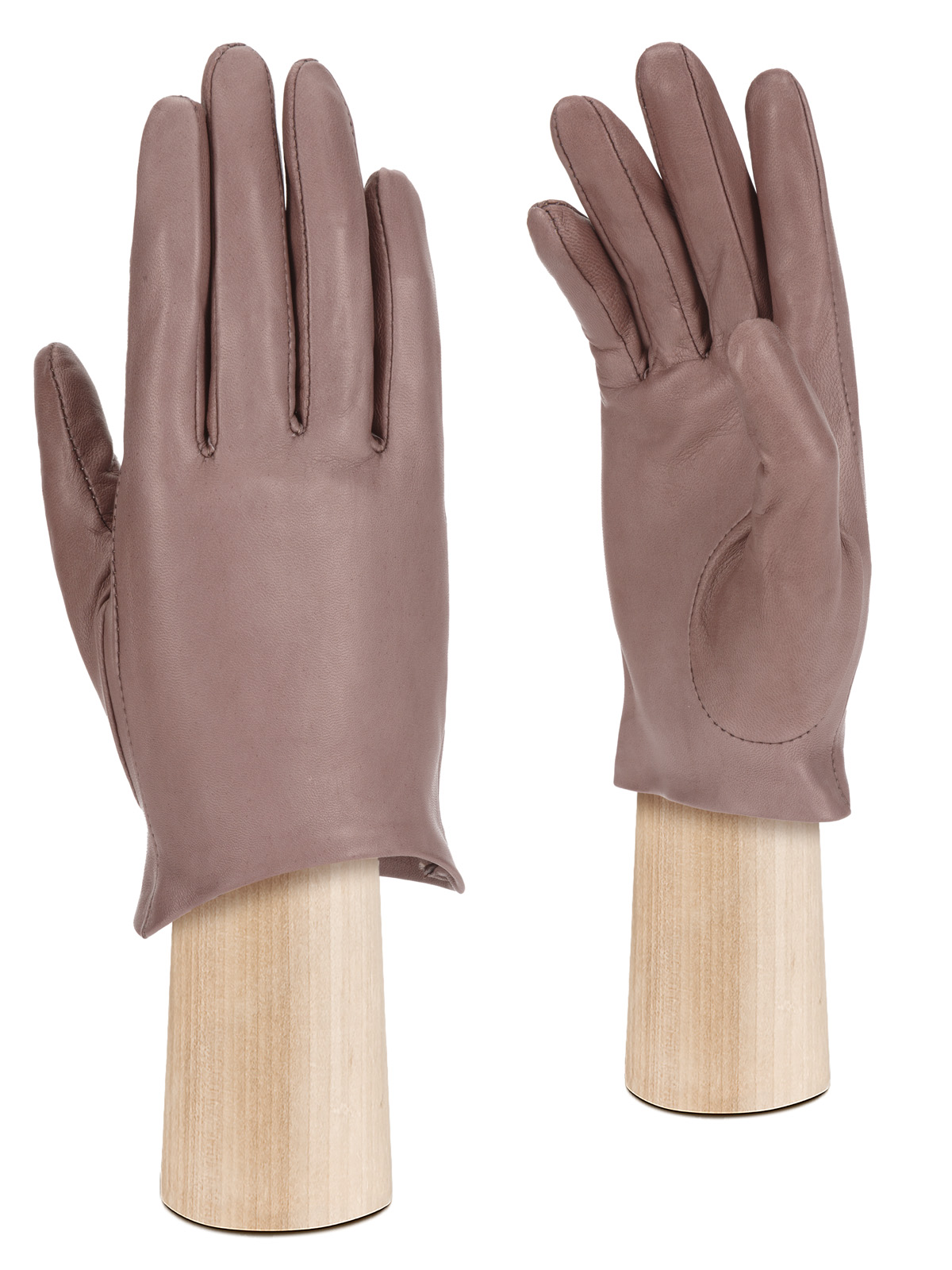Перчатки женские торговой марки ELEGANZZA. Выполнены из натуральной кожи ягнёнка производства Италии. Без подкладки. Длина манжеты от нижней точки большого пальца до края перчаток - 2.5 см. Длина пальцев - средняя.