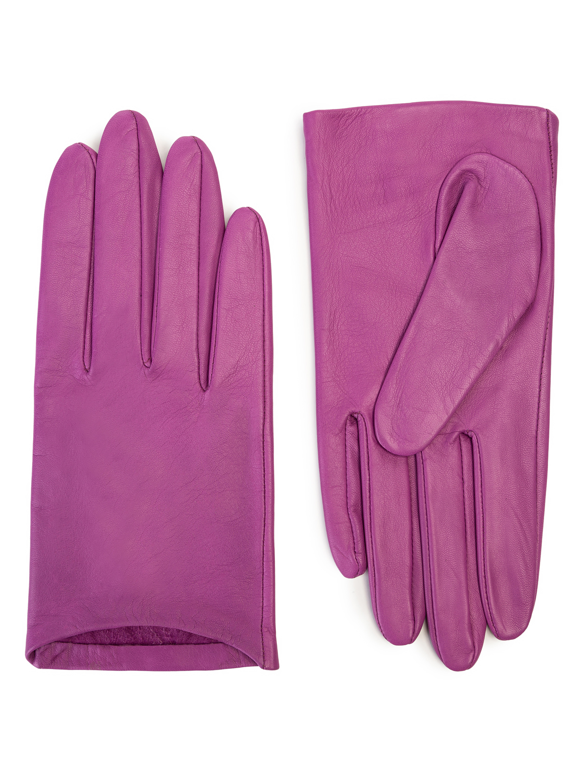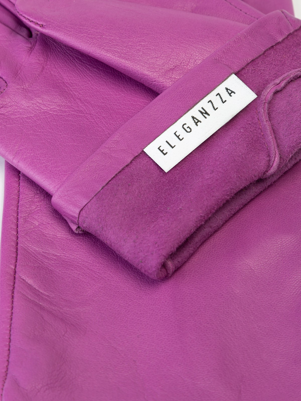 Перчатки женские торговой марки ELEGANZZA. Выполнены из натуральной кожи ягнёнка производства Италии. Без подкладки. Длина манжеты от нижней точки большого пальца до края перчаток - 2.5 см. Длина пальцев - средняя.