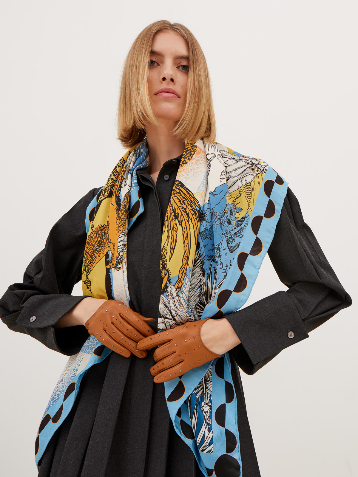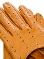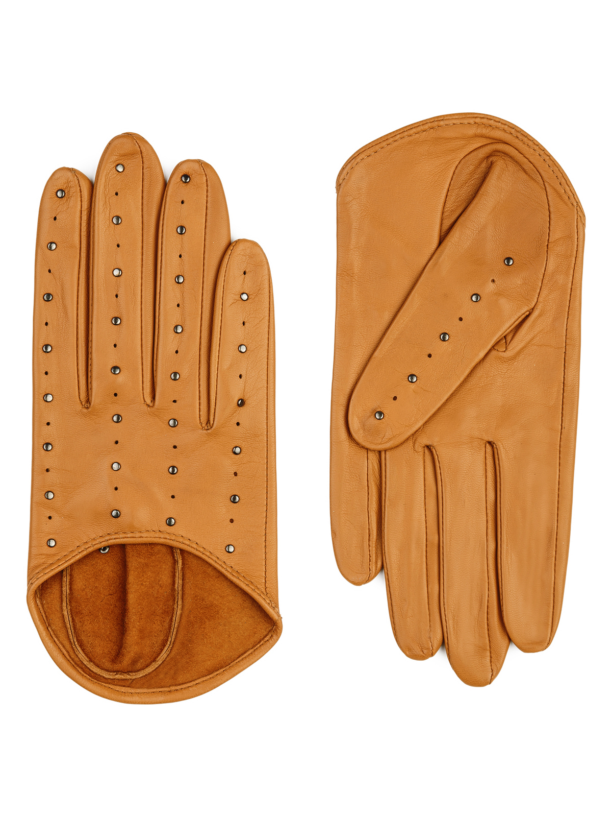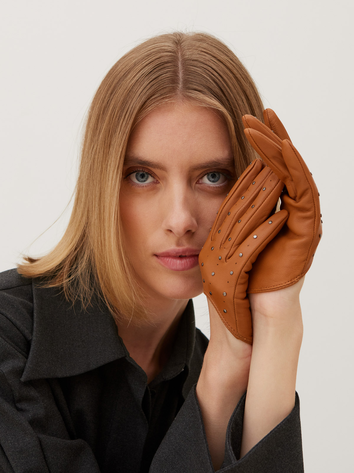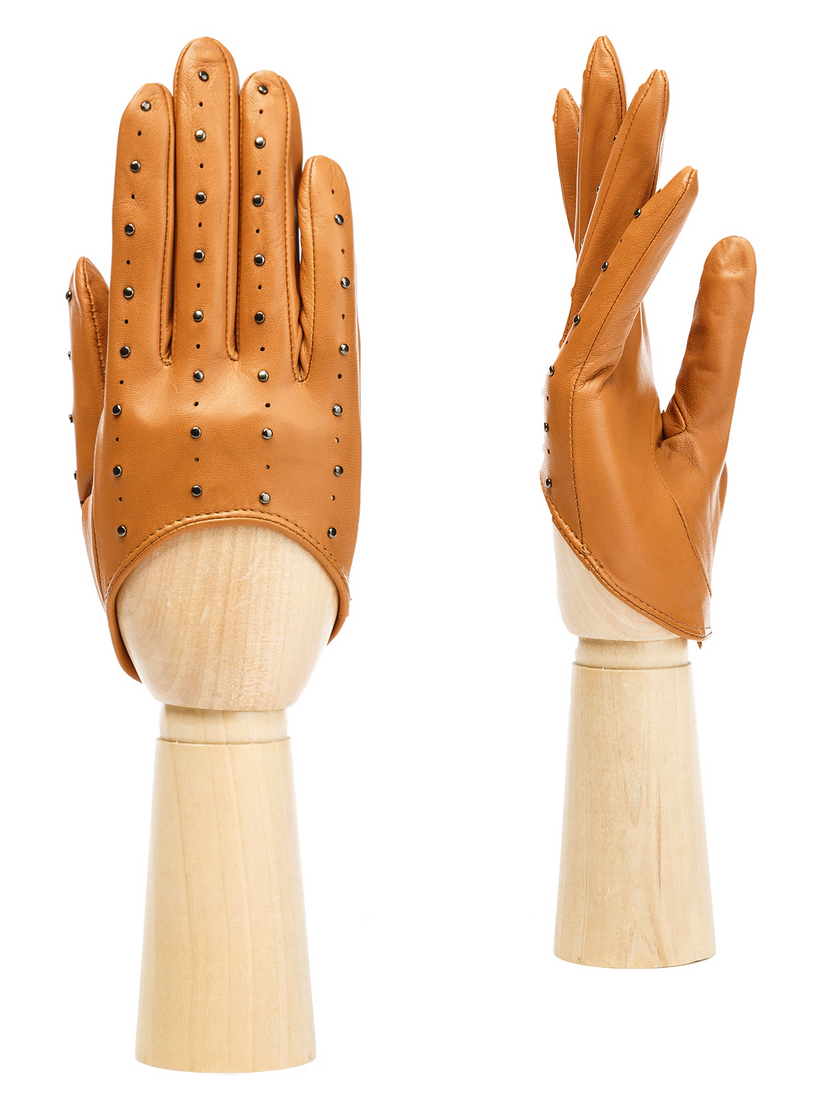 Перчатки торговой марки ELEGANZZA выполнены из кожи ягнёнка производства Италия. Без подкладки. Отделка - декоративные хольнитены на кожаных ремнях которые украшают элегантный вырез. Длина манжеты от нижней точки большого пальца до края перчаток - 1 см. Длина пальцев - средняя.