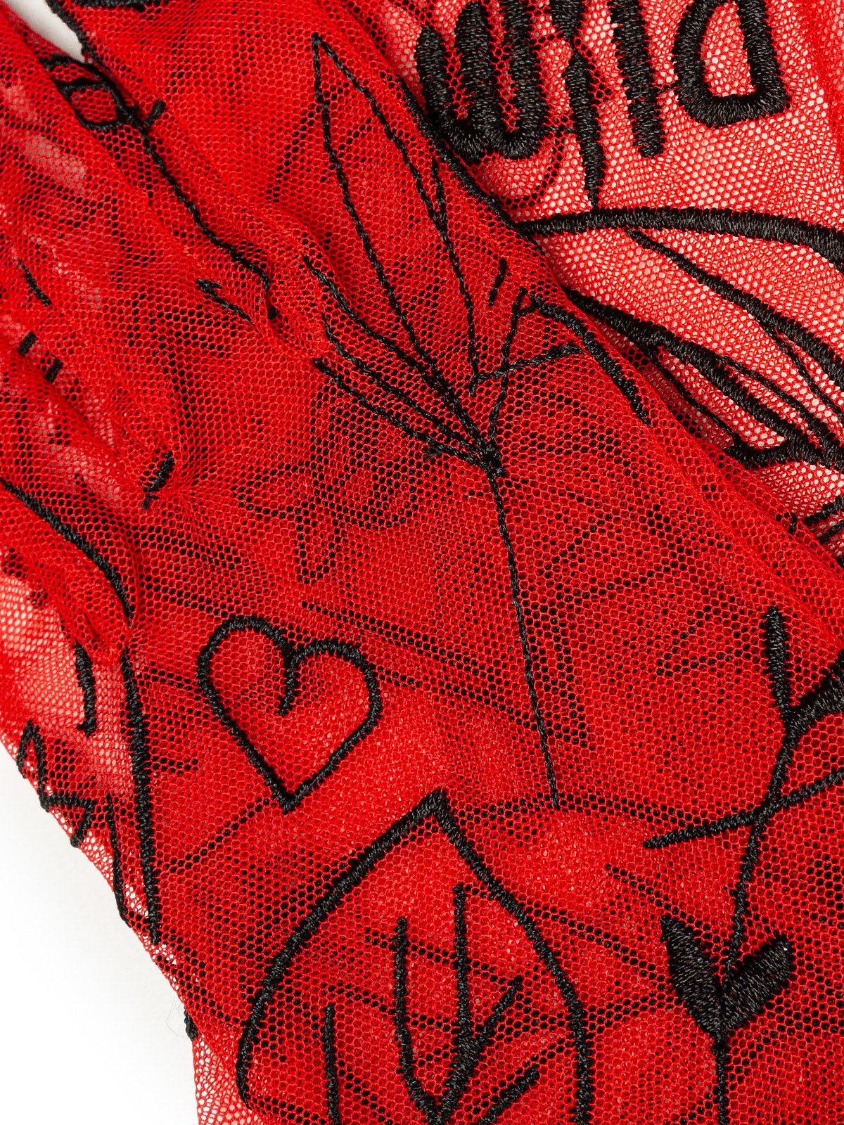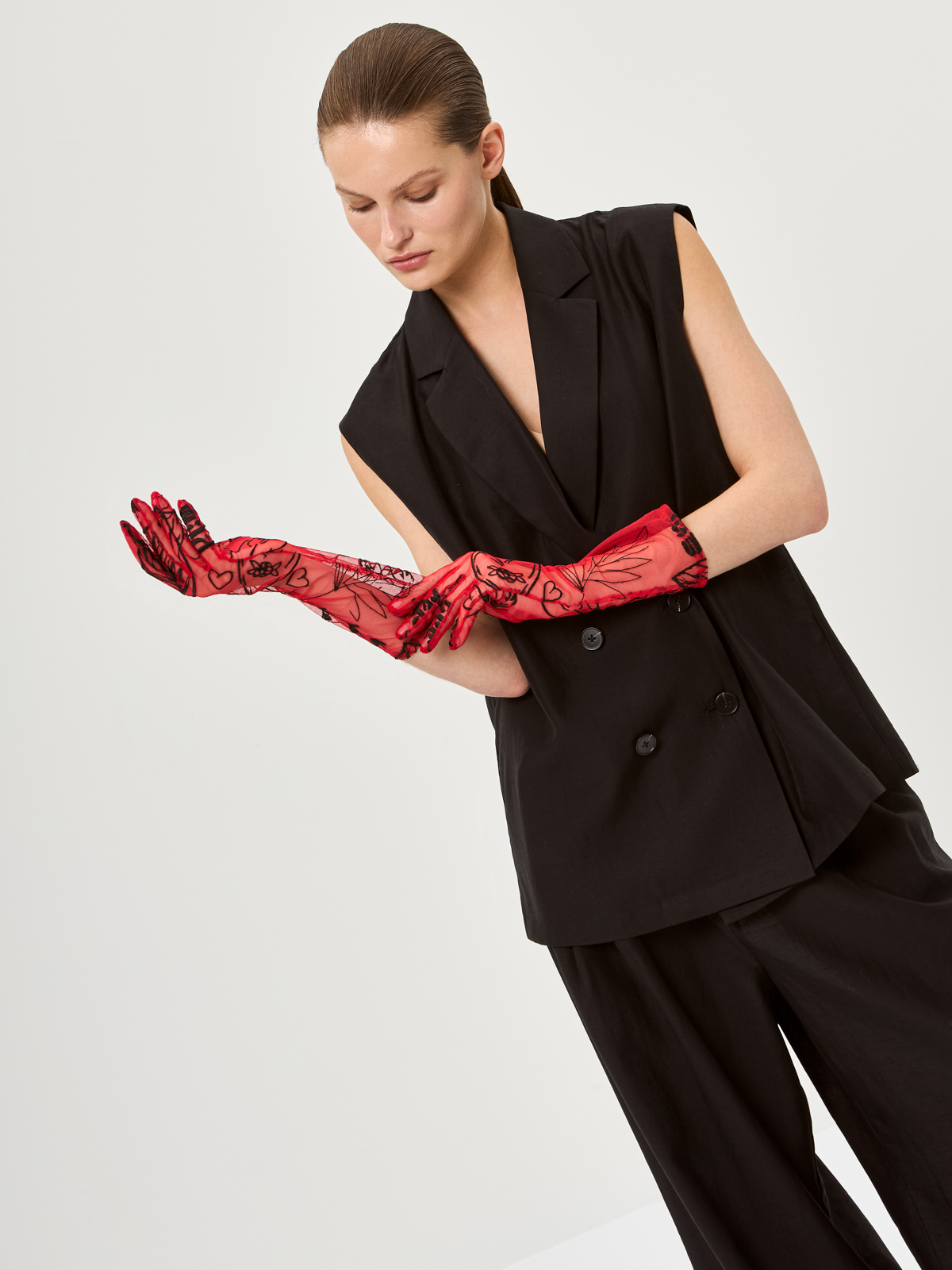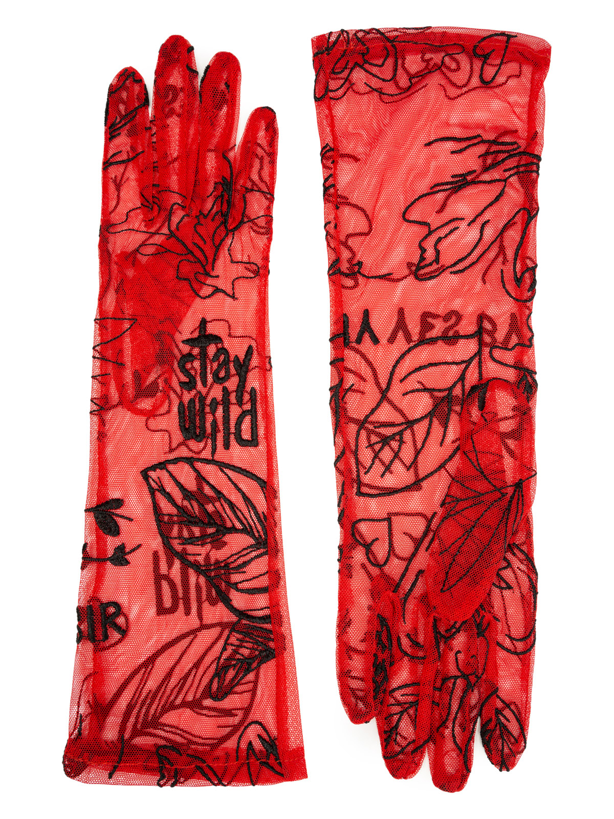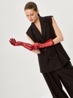 Текстильные полупрозрачные женские перчатки торговой марки ELEGANZZA . Декоративная отделка - принт соответствующий стилистике коллекциии текущего сезона. Длина манжета от нижней точки большого пальца до края перчаток составляет 16 см. Длина пальцев - средняя.