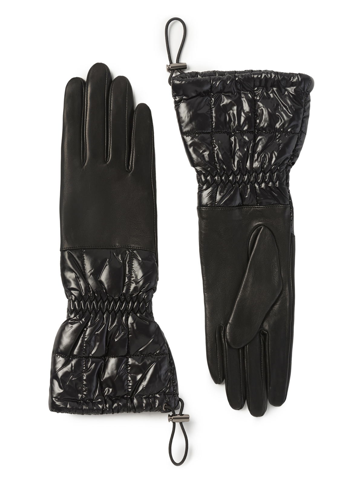 Перчатки женские торговой марки ELEGANZZA из натуральной кожи ягненка. Производство Китай. Подкладка: 100% шерсть. Декоративный широкий раструп выполнен из утепленной болоньи с функциональной утяжкой. Длина манжета от нижней точки большого пальца до края перчаток - 12 см. Длина пальцев - средняя.