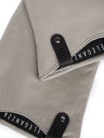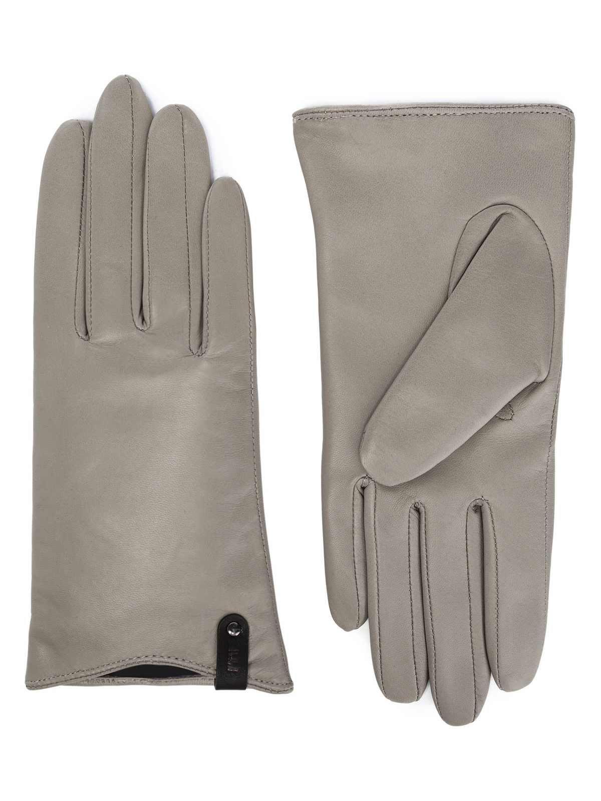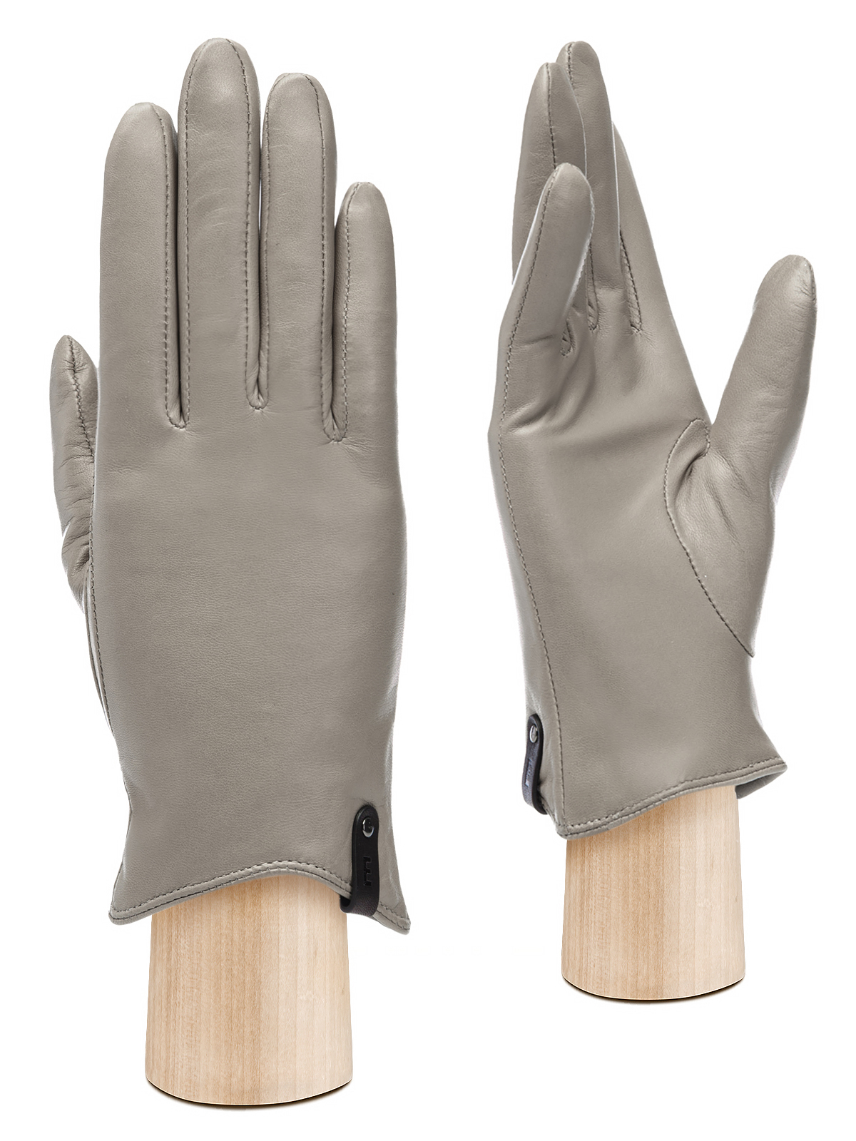 Перчатки женские торговой марки ELEGANZZA из натуральной кожи ягненка. Подкладка черного цвета 85% шерсть 15% кашемир. Декоративная отделка - кожаная петелька с фирменным штампом из плотной кожи закрепленная черным матовым хольнитеном. Длина манжеты от нижней точки большого пальца до края перчаток - 3 см. Длина пальцев - средняя.