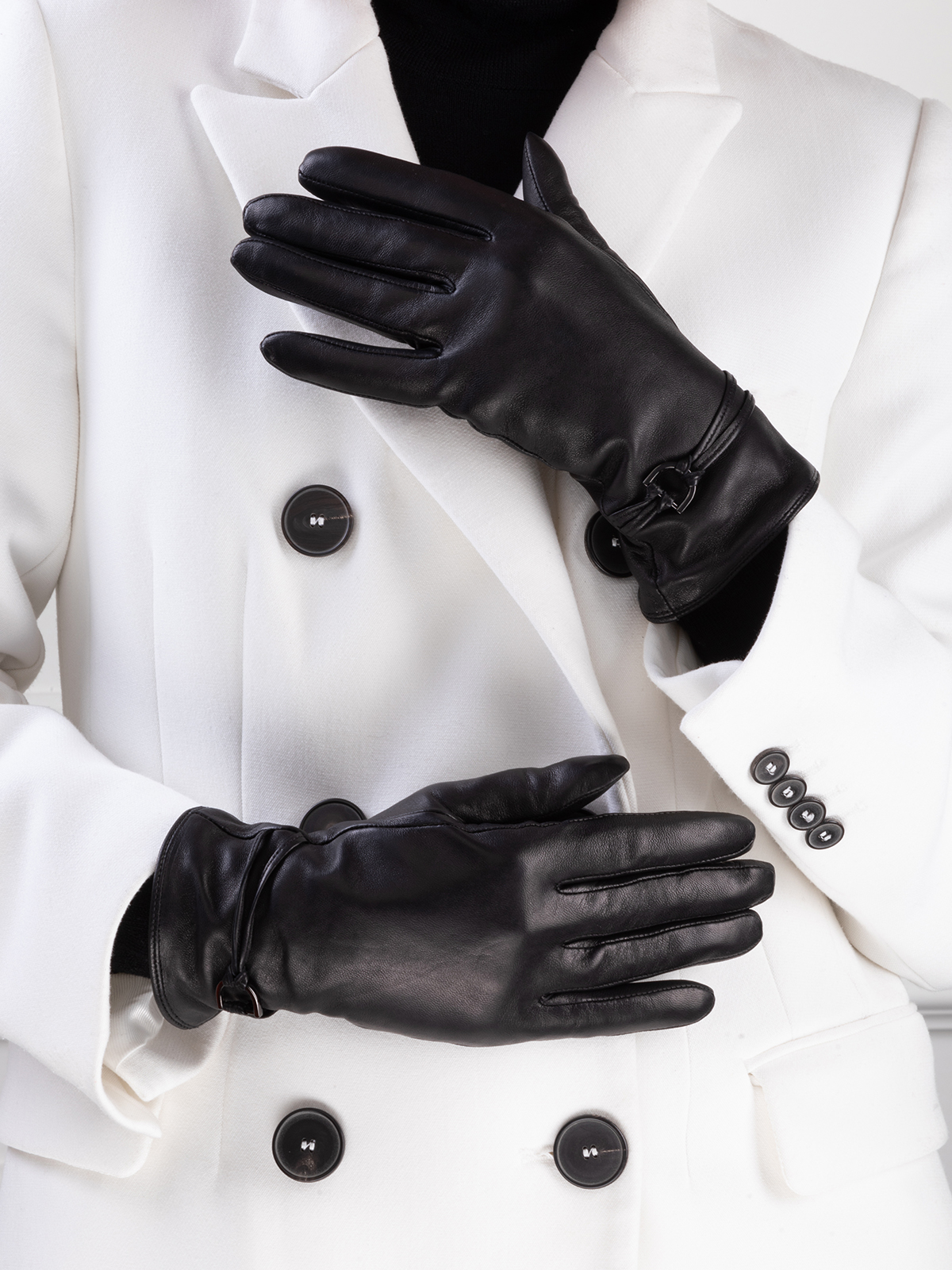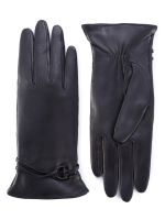 Перчатки женские торговой марки ELEGANZZA. Выполнены из эксклюзивной итальянской кожи ягнёнка на подкладе из шерстяной пряжи с добавлением кашемира. Манжеты украшены тонкими кожаными шнурками закрепленными в шов и фурнитуру цвета никель. Модель со средней длиной пальцев и длиной манжеты от нижней точки большого пальца до края перчаток - 6 см.