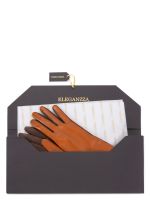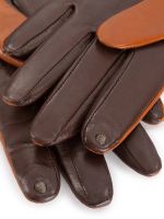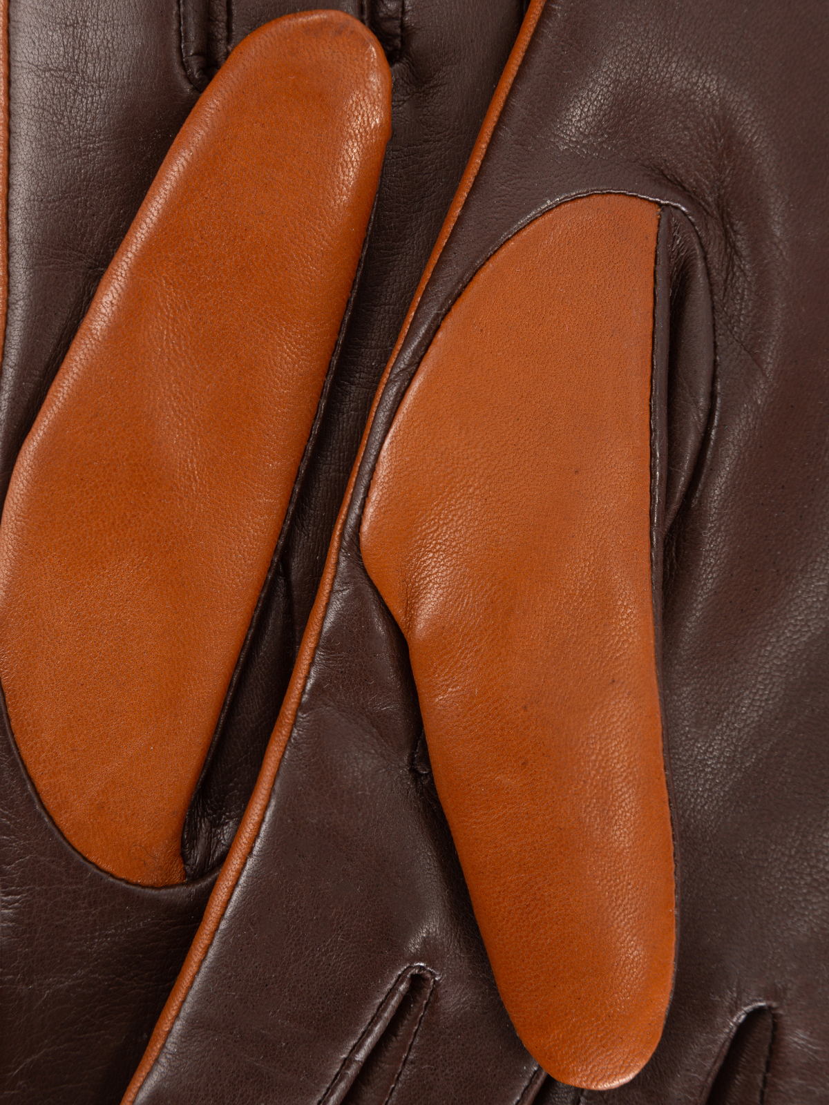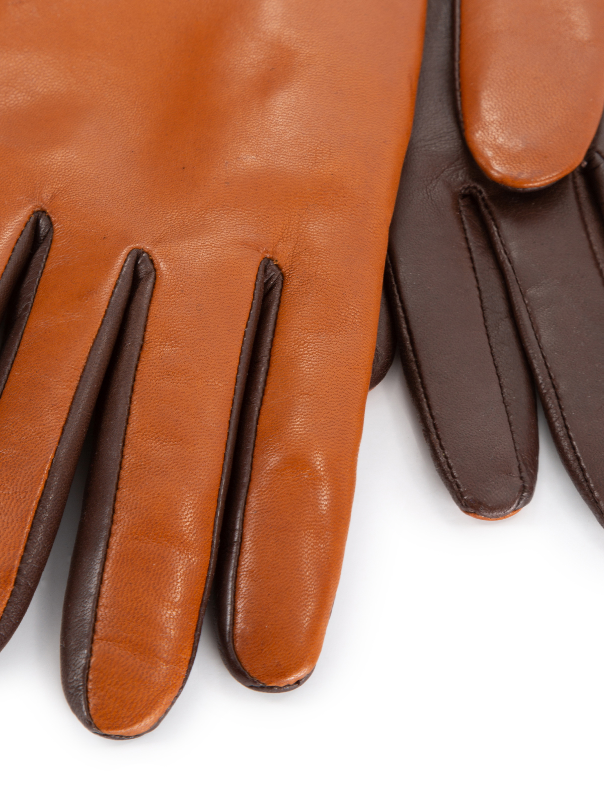 Перчатки торговой марки ELEGANZZA производства Филиппины изготовленный из натуральной кожи ягненка. Двухцветная перчатка украшена контрастными отстрочками по всей длине вдоль мизинца. Подкладка: 50% шерсть + 50% кашемир. Данная модель позволяет работать с сенсорным экраном. Длина манжеты от нижней точки большого пальца до края перчаток - 14 см. Длина пальцев - средняя.