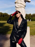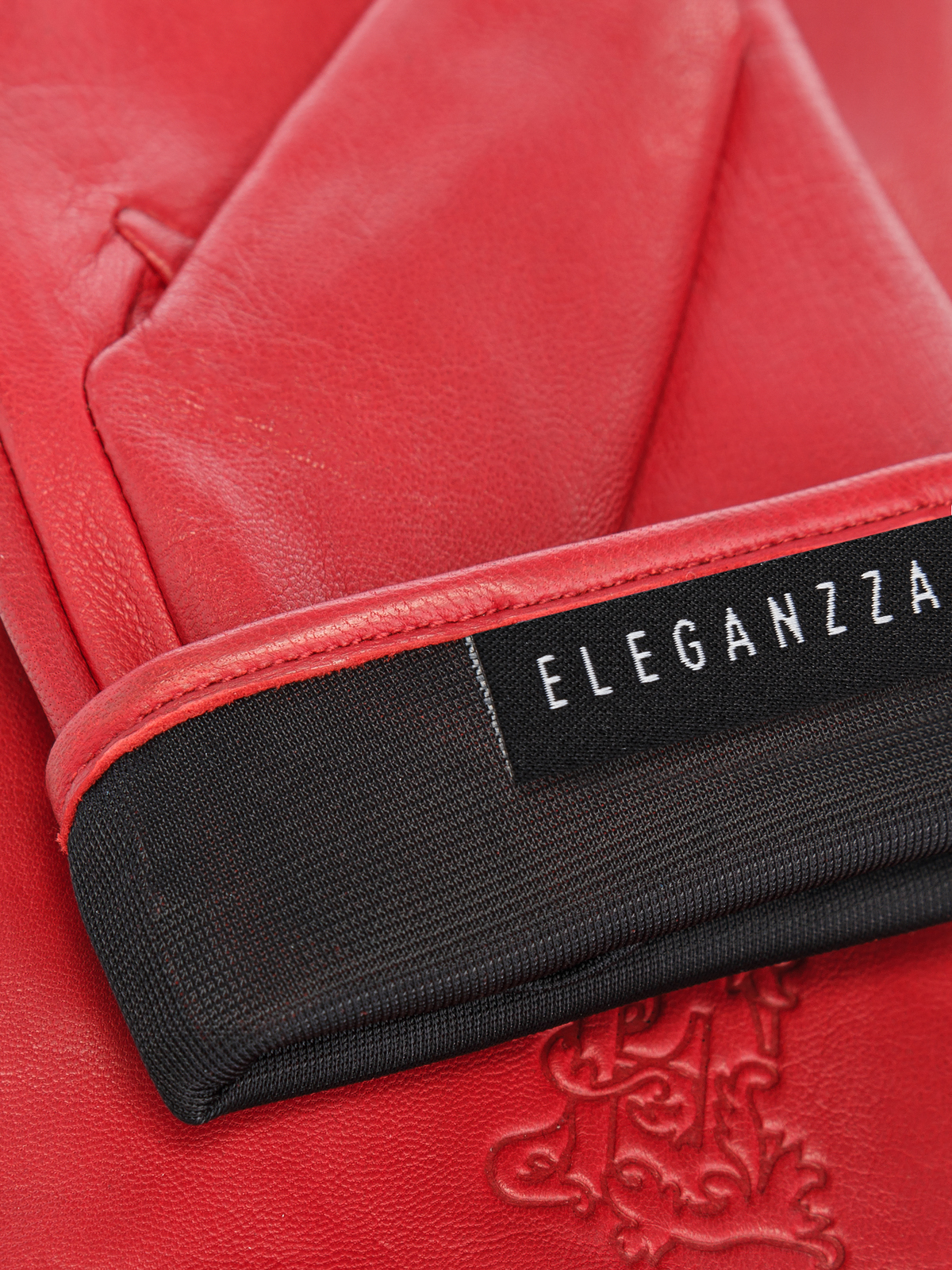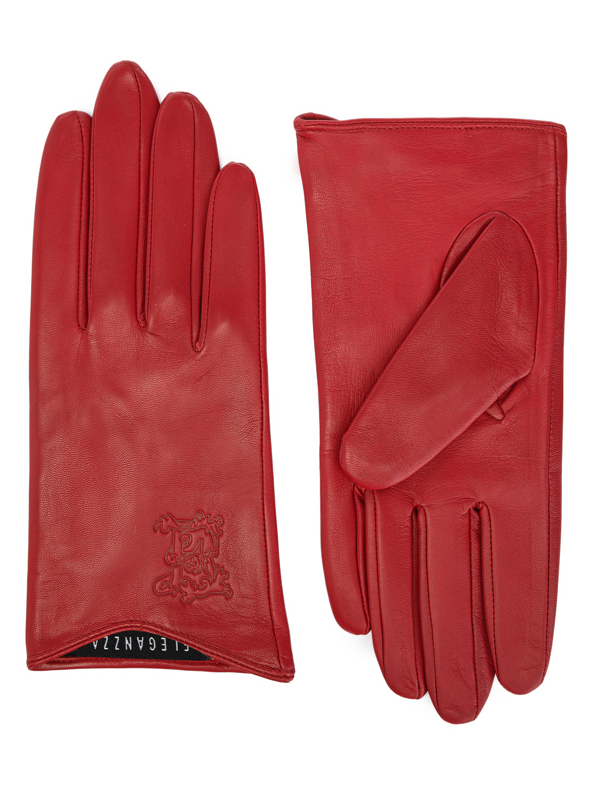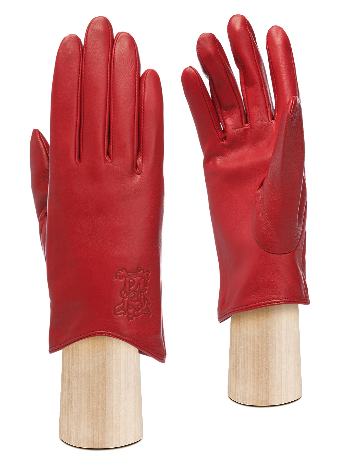 Перчатки женские торговой марки ELEGANZZA из натуральной кожи ягненка производства Италии. Подкладка 100% шелк. Декоративная отделка - фирменный вензельный штамп на лицевой поверхности перчатки. Длина манжеты от нижней точки большого пальца до края перчаток - 3 см. Длина пальцев - средняя.