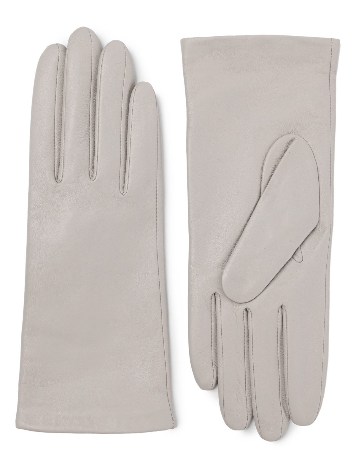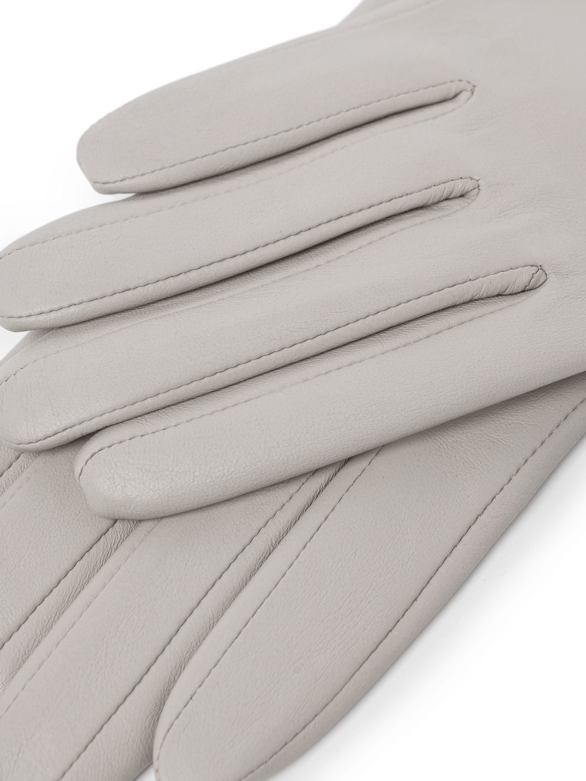 Перчатки женские торговой марки ELEGANZZA выполнены из натуральной кожи ягнёнка и дополнены подкладом из искусственного шелка. Подгибка изделия выполнена с помощью уникальной технологии объединяющей в себе преимущества ручной техники - эластичность и удобство посадки и машинной - эстетика и безупречная внутренняя отделка. Технология по которой выполнена подгибка на манжете этих перчаток - эксклюзивная разработка и фирменное отличие бренда Eleganzza. Модель со средней длиной пальцев и длиной манжеты от нижней точки большого пальца до края перчаток - 6 см.