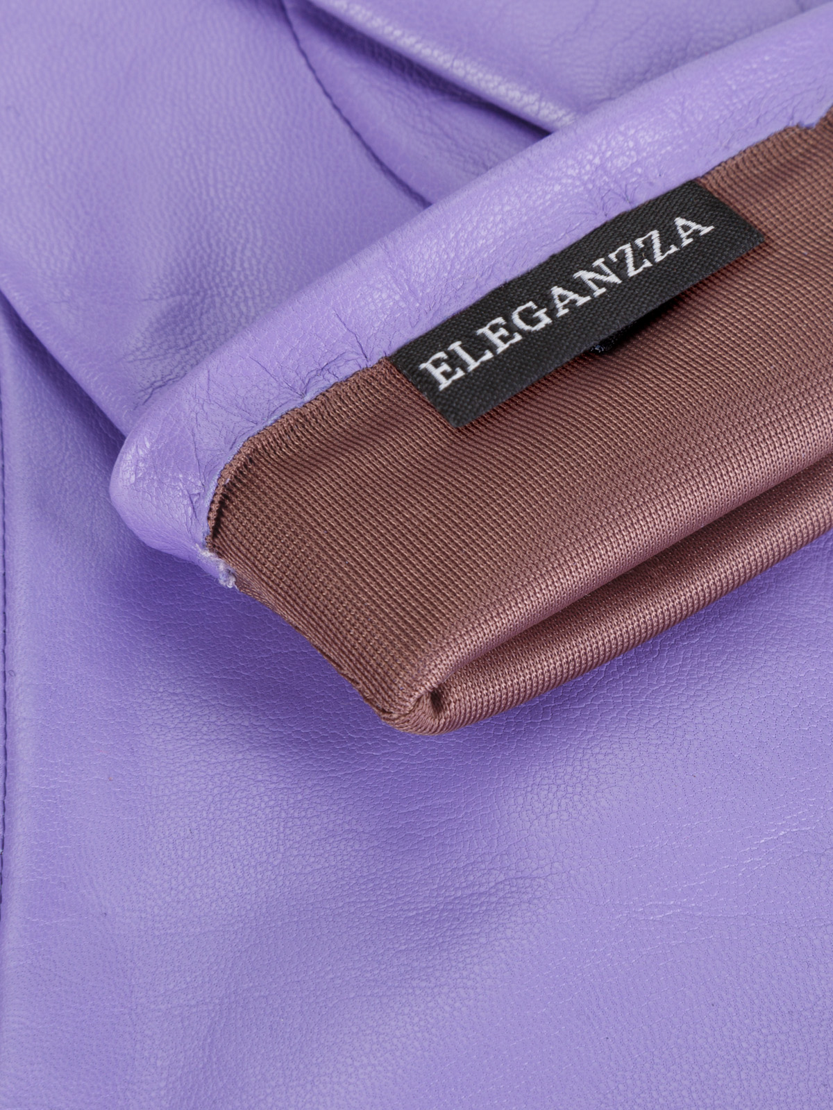 Перчатки женские торговой марки ELEGANZZA из натуральной кожи ягнёнка. Производство Китай. Подкладка: искуственный шелк. Длина манжеты от нижней точки большого пальца до края перчаток - 6 см. Длина пальцев - средняя.