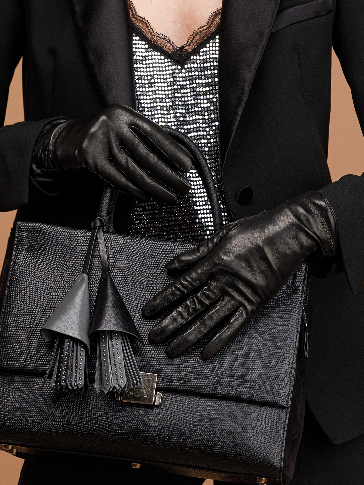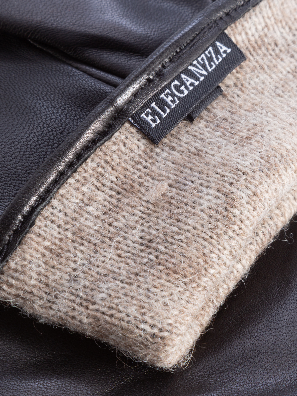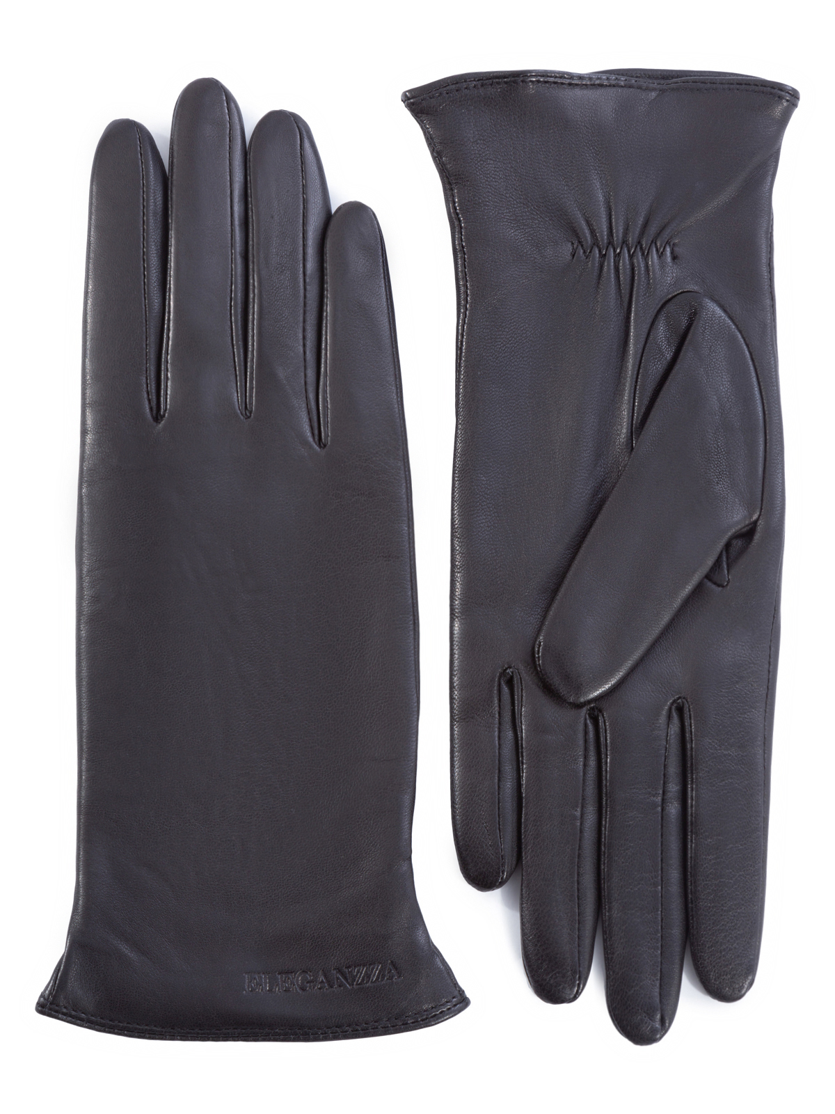 Перчатки женские торговой марки ELEGANZZA из натуральной кожи ягненка производства Италии. Подкладка: 100% шерсть. В углу перчатки со стороны мизинца фирменный штамп" ELEGANZZA. Длина манжеты от нижней точки большого пальца до края перчаток составляет - 55 см. Длина пальцев - средняя."
