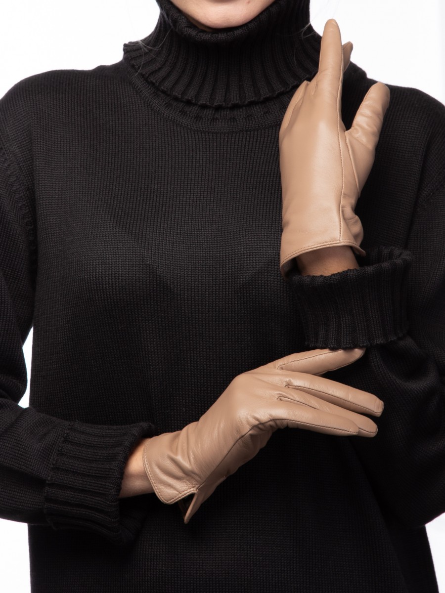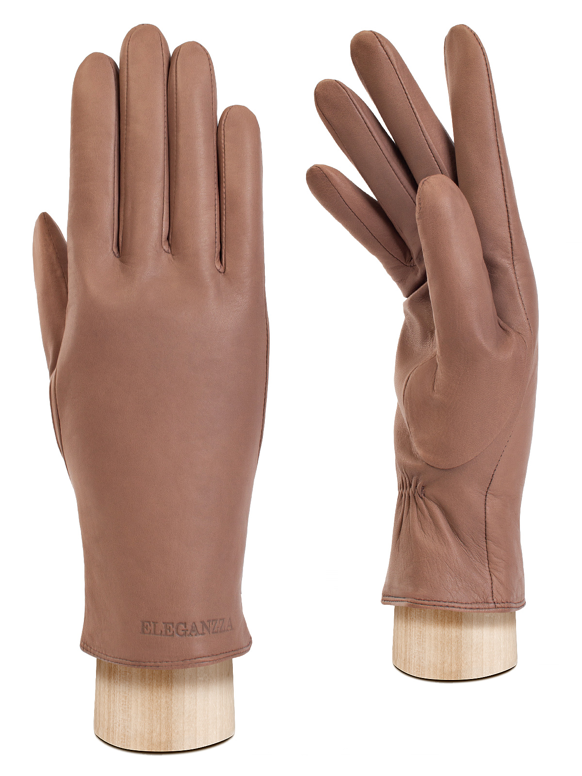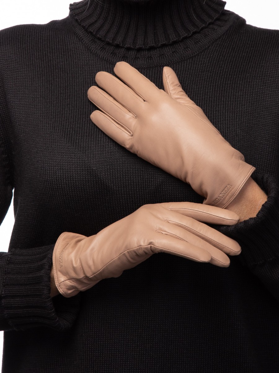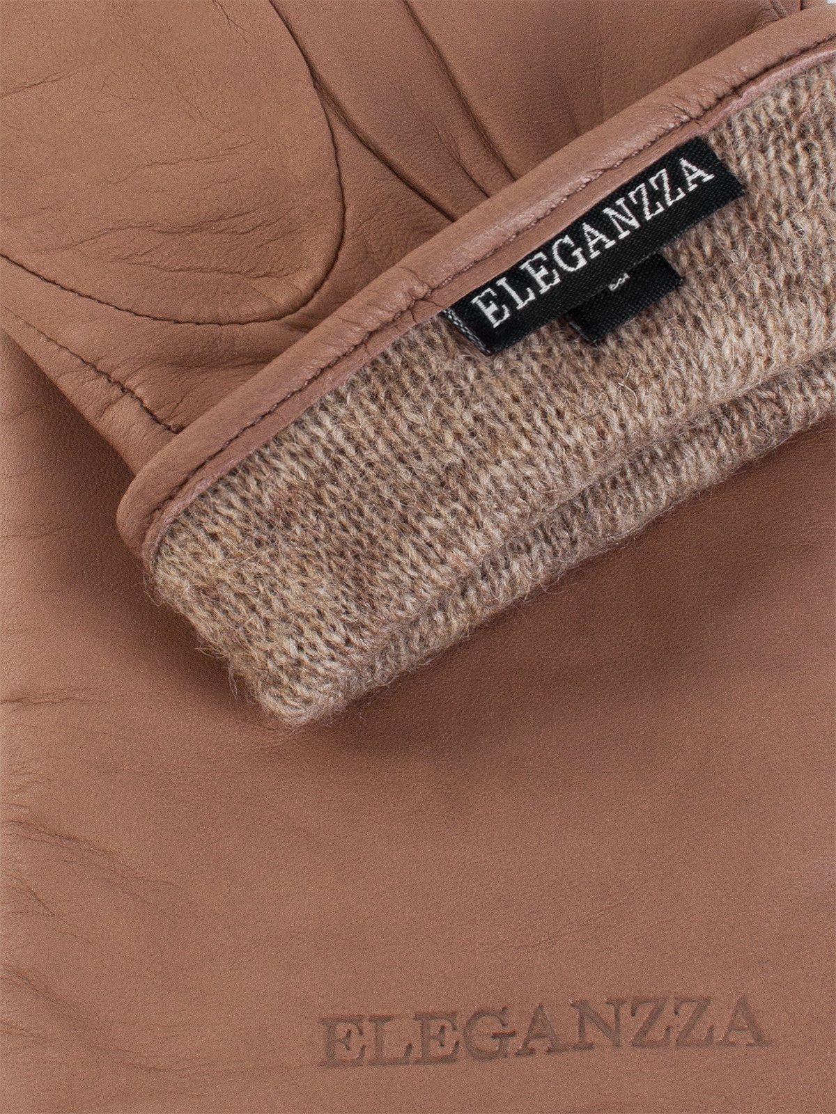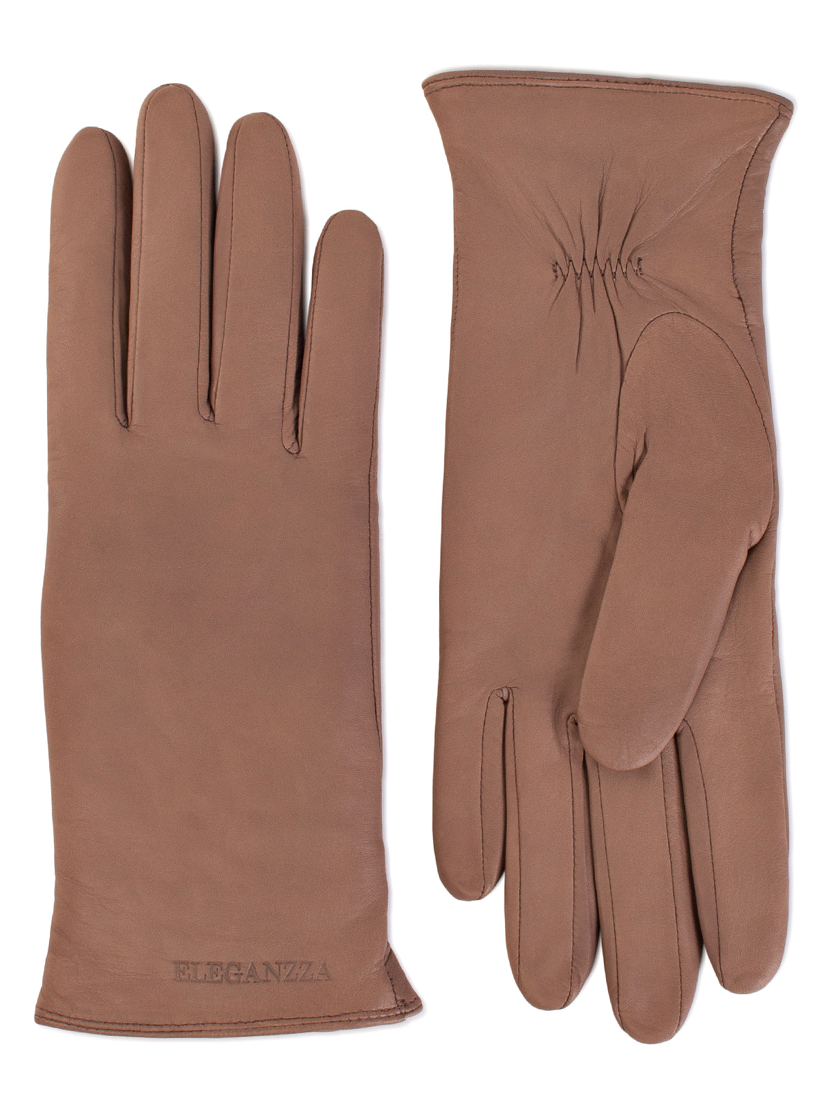 Перчатки женские торговой марки ELEGANZZA из натуральной кожи ягненка производства Италии. Подкладка: 100% шерсть. В углу перчатки со стороны мизинца фирменный штамп" ELEGANZZA. Длина манжеты от нижней точки большого пальца до края перчаток составляет - 55 см. Длина пальцев - средняя."