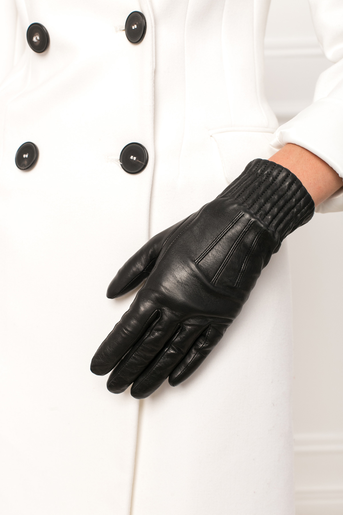 Перчатки женские торговой марки ELEGANZZA производства Китай изготовлены из натуральной кожи ягнёнка. Отделка - декоративные швы 3 луча" на лицевой стороне манжет в виде широкой резинки которая декоративно отстрочена.. Подкладка: 100% шерсть. Длина манжеты от нижней точки большого пальца до края перчаток - 6 см. Длина пальцев - средняя."