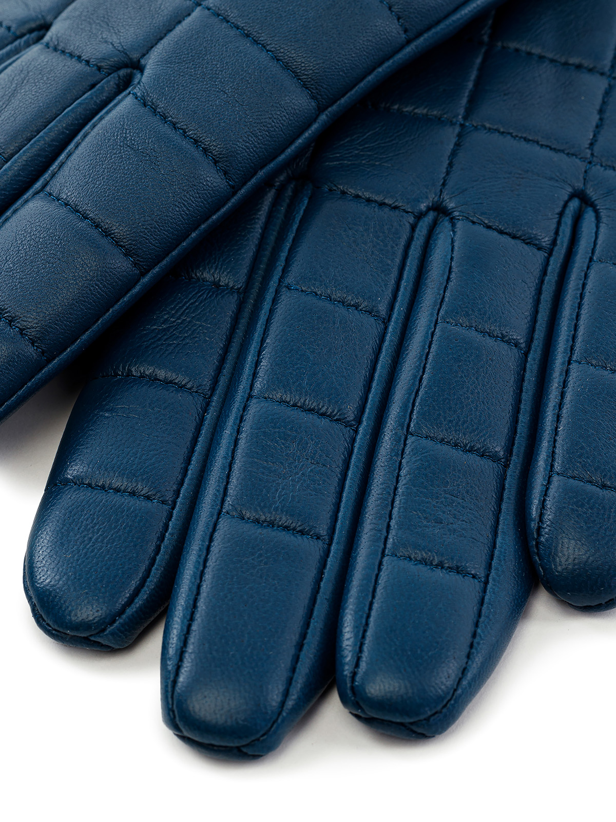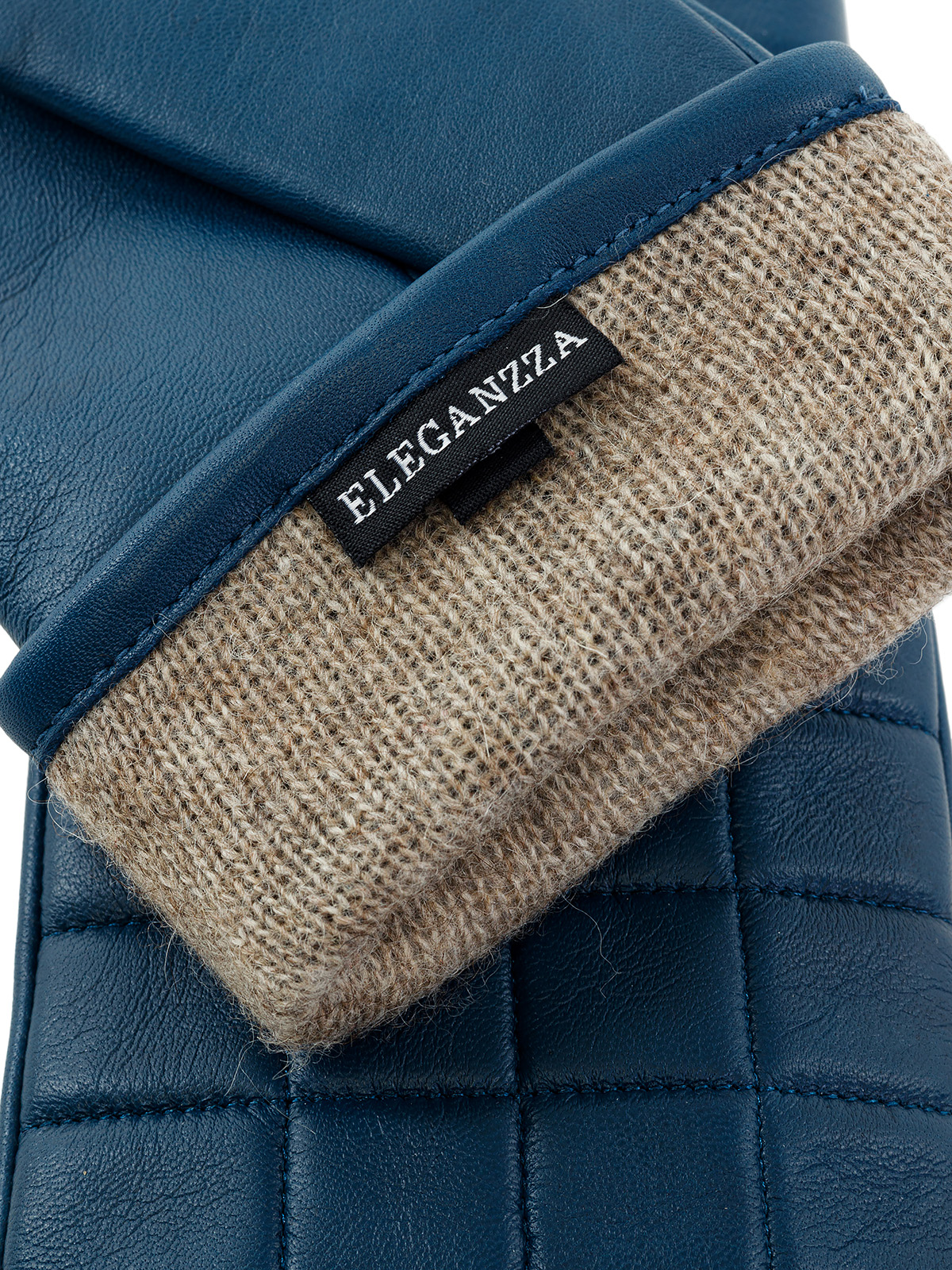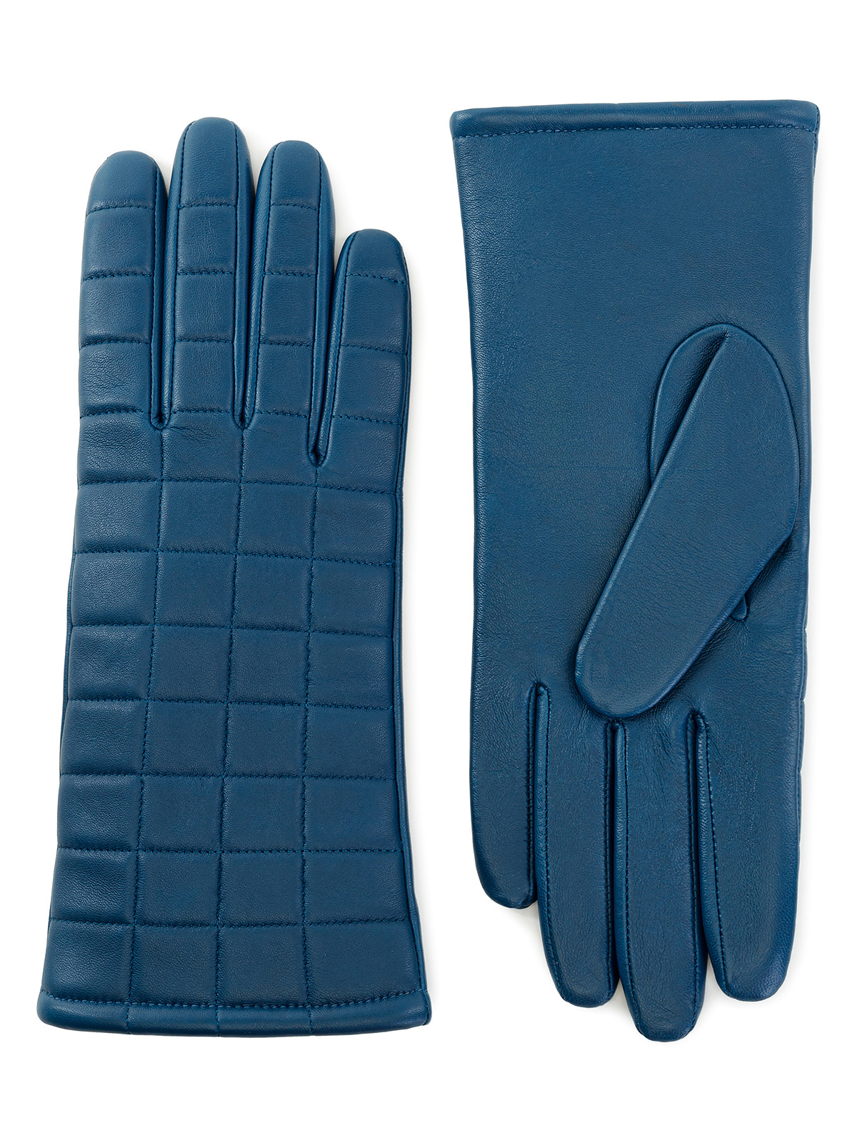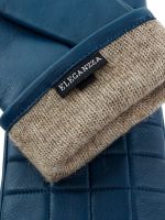 Перчатки женские торговой марки ELEGANZZA из натуральной кожи ягненка. Производство Китай. Подкладка: 100% шерсть. Отделка – декоративная отстрочка в форме симметричных квадратов по всей лицевой части. Длина манжеты от нижней точки большого пальца до края перчаток - 5 см. Длина пальцев - средняя.