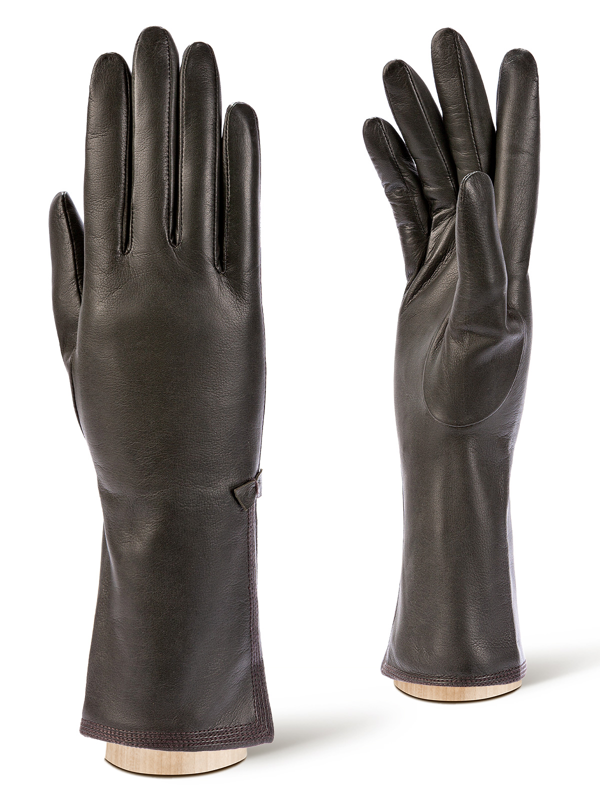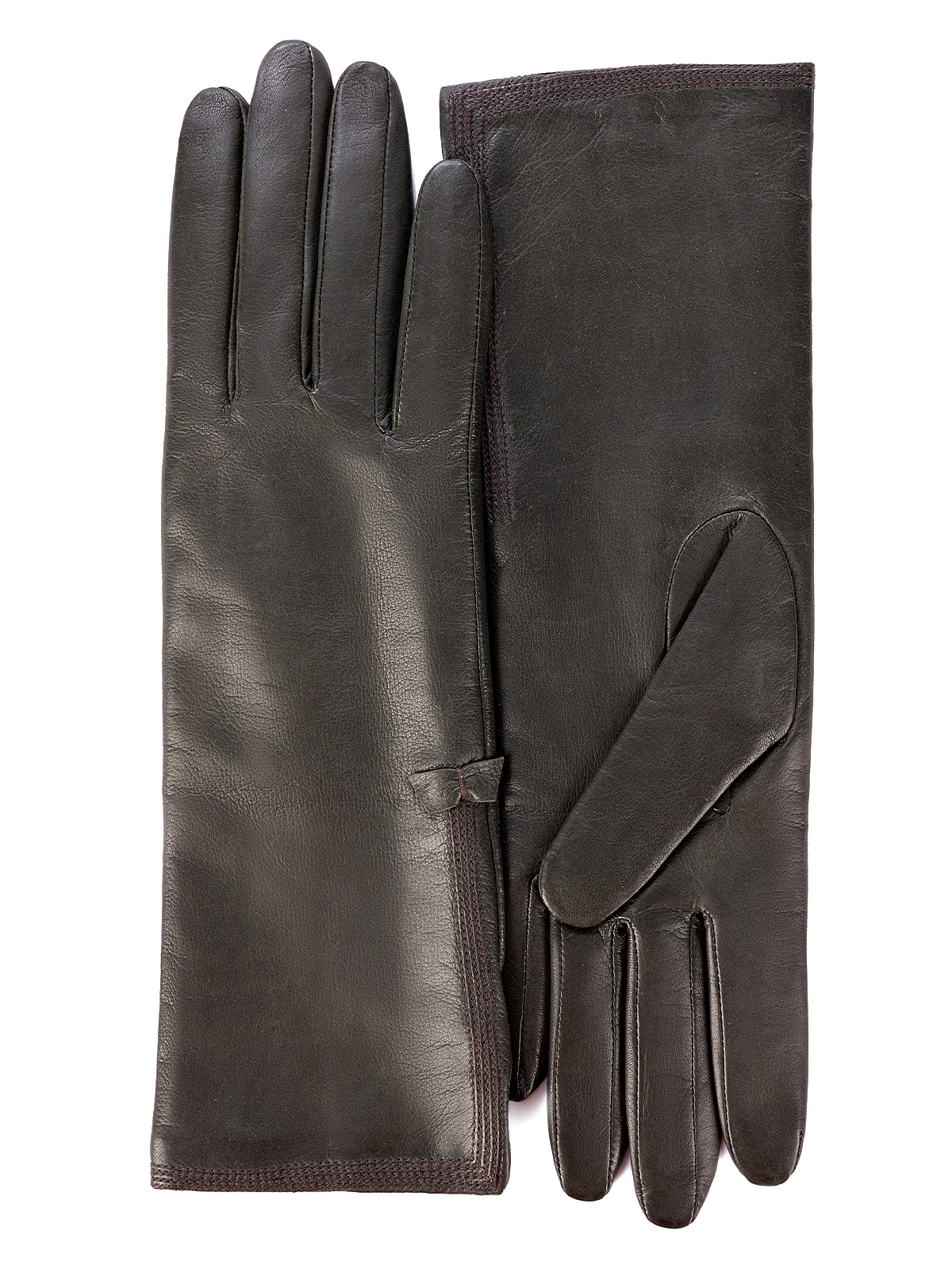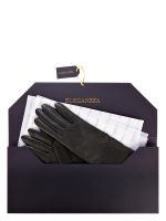 Перчатки женские торговой марки ELEGANZZA из натуральной кожи ягненка. Производство Филиппины. Подкладка: 50% шерсть + 50% кашемир. Отделка - тройной шов по краю манжеты и элегантный маленький бантик. Длина манжеты от нижней точки большого пальца до края перчаток - 11.5 см. Длина пальцев - средняя.