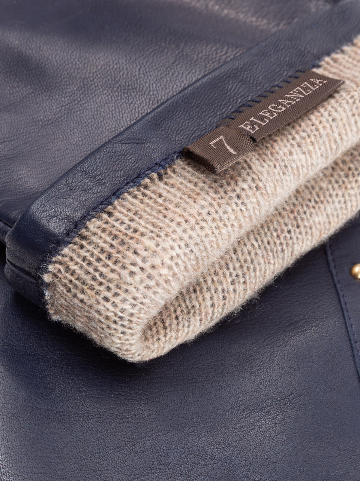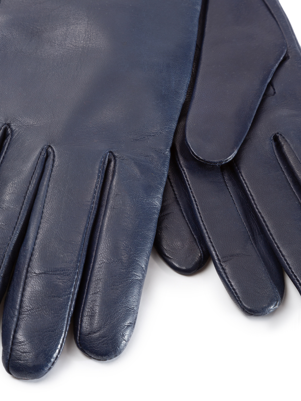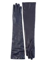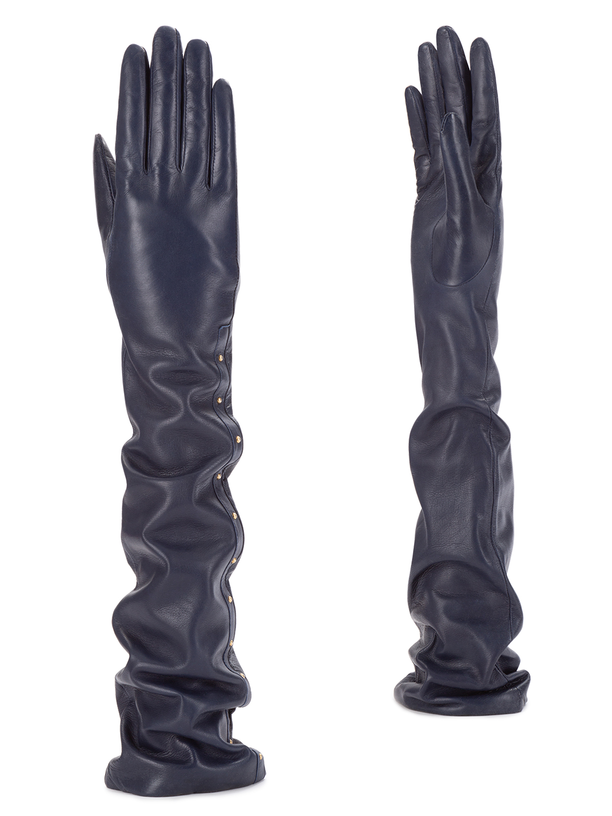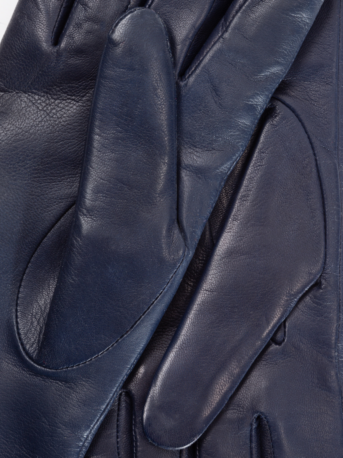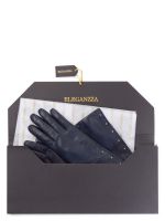 Перчатки торговой марки ELEGANZZA производства Филиппины. Выполнены из кожи ягненка. Подкладка: 50% шерсть + 50% кашемир. Отделка - дополнительная тонкая полоска по всей длине перчатки по линии мизинца украшенная миниматюрными хольнитенами. Длина манжеты от нижней точки большого пальца до края перчаток - 34 см. Длина пальцев - средние.