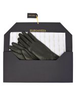 Перчатки женские торговой марки ELEGANZZA из натуральной кожи ягненка. Производство Филиппины. Подкладка: 50% шерсть + 50% кашемир. Длина манжеты от нижней точки большого пальца до края перчаток - 15.2 см. Длина пальцев - средняя.
