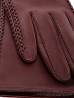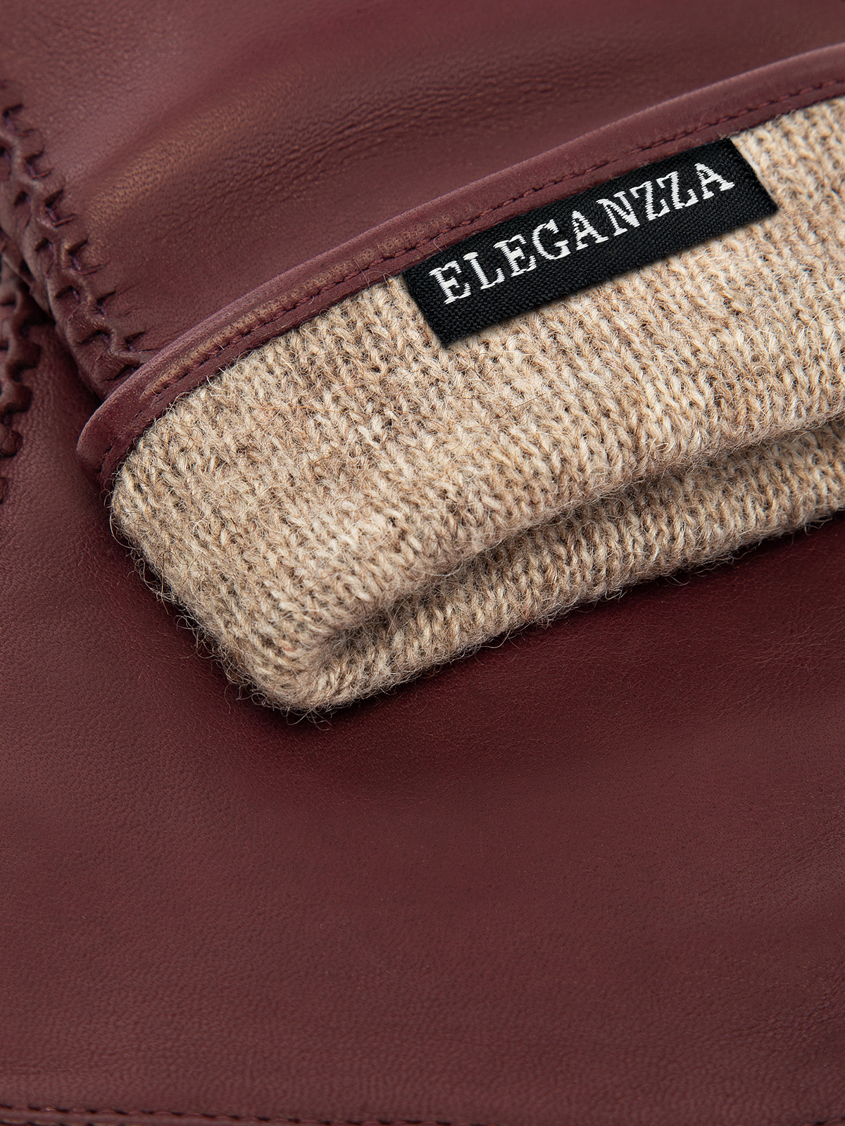 Перчатки торговой марки ELEGANZZA выполнены из кожи ягнёнка производства Италии. Подкладка: 85%шерсть15%кашемир. Отделка - два декоративных шва метеор": вдоль указательного пальца и мизинца. Нижний край перчатки окантован. Резинка на ладонной стороне. Длина манжеты от нижней точки большого пальца до края перчаток - 75 см. Длина пальцев - средняя."