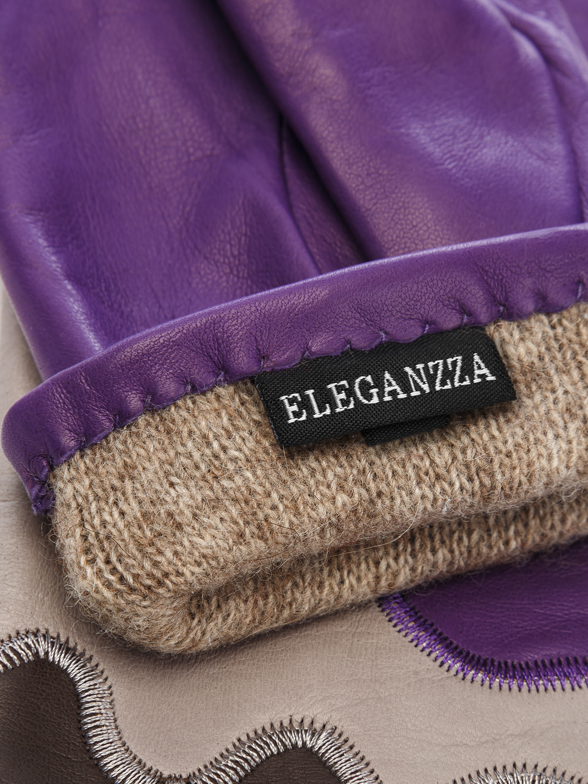 Перчатки женские торговой марки ELEGANZZA из натуральной кожи ягненка производства Италии. Подкладка: 85% шерсть 15% кашемир. Отделка - контрастные декоративные вставки из натуральной кожи. Длина манжеты от нижней точки большого пальца до края перчаток составляет - 5 см. Длина пальцев - средняя.