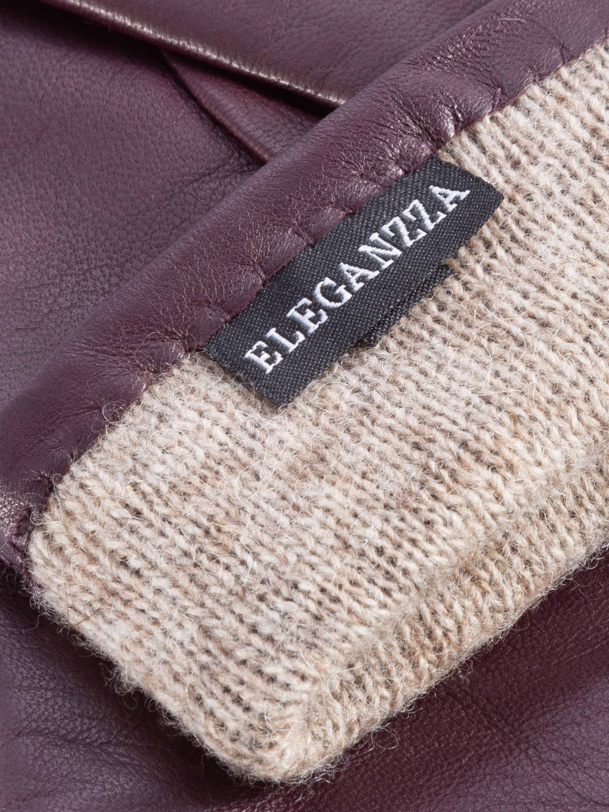Перчатки торговой марки ELEGANZZA производства Италия выполнены из натуральной кожи ягненка. Подкладка: 85% шерсть 15% кашемир. Отделка - фурнитура с фирменной символикой в углу перчатки. Длина манжеты от нижней точки большого пальца до края перчаток - 6 см. Длина пальцев - удлиненные.