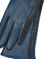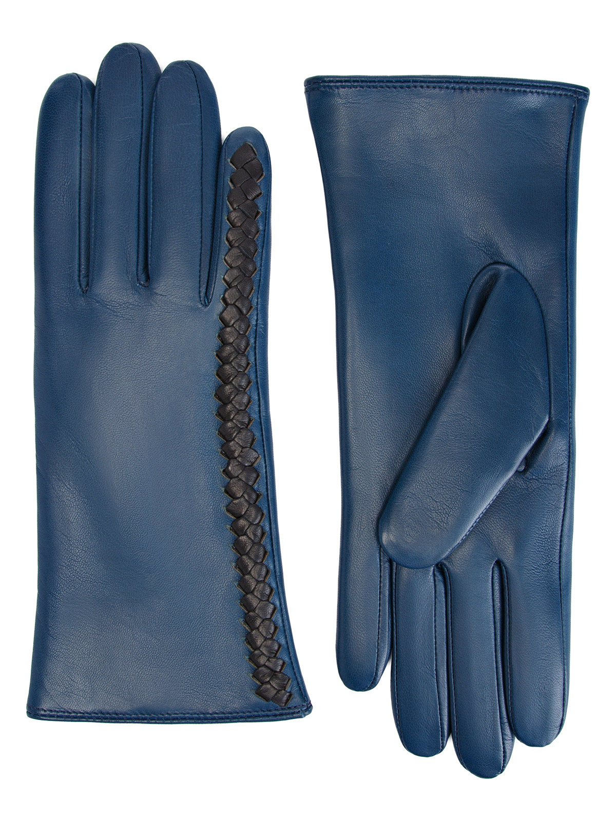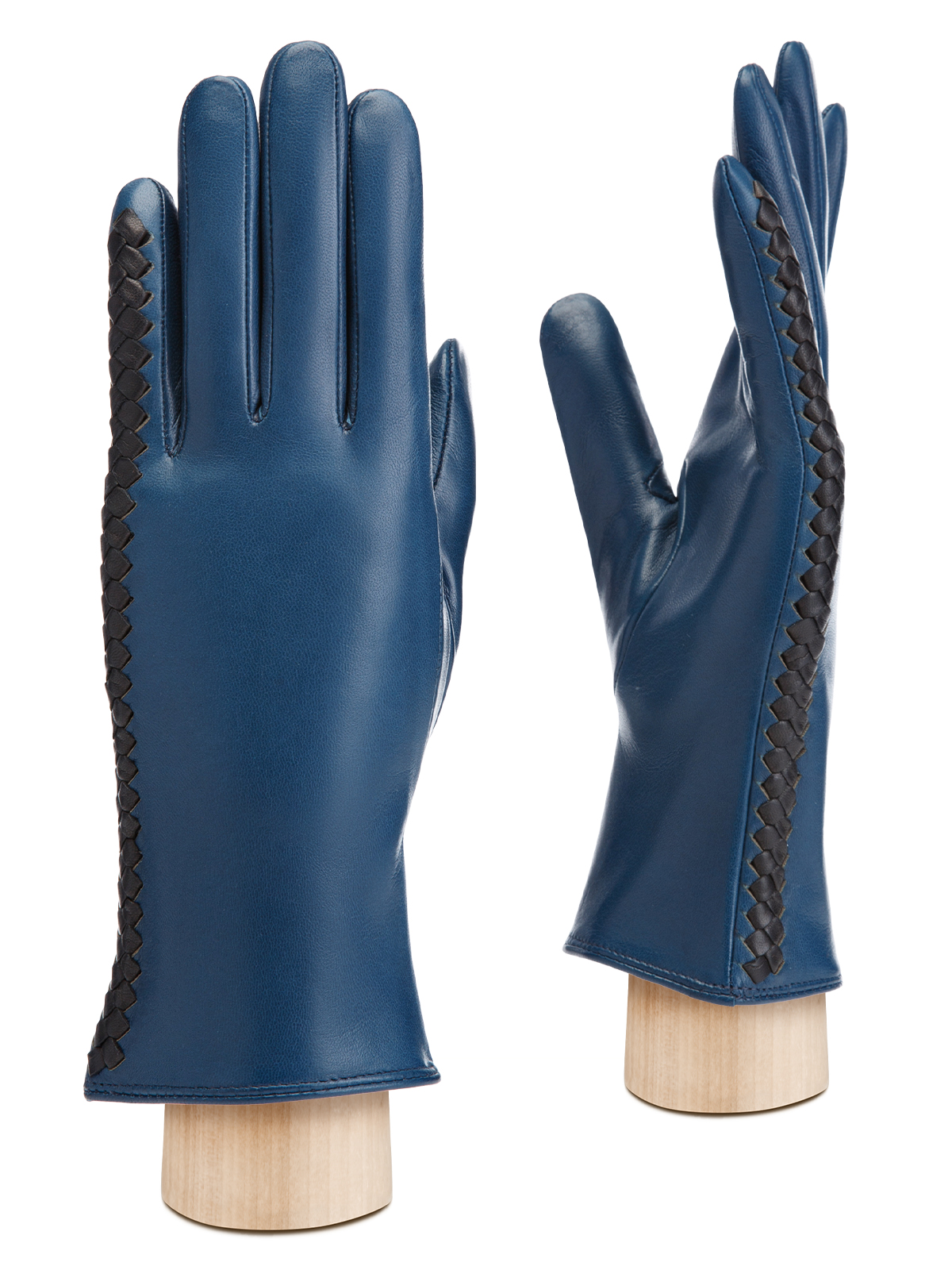 Перчатки торговой марки ELEGANZZA выполнены из кожи ягнёнка производства Италии. Подкладка: 85%шерсть15%кашемир. Отделка - декоративная продежка тонким кожаным шнурком в форме косички вдоль мизинца впыолняется в ручную. Длина манжеты от нижней точки большого пальца до края перчаток - 65 см. Длина пальцев - средняя.