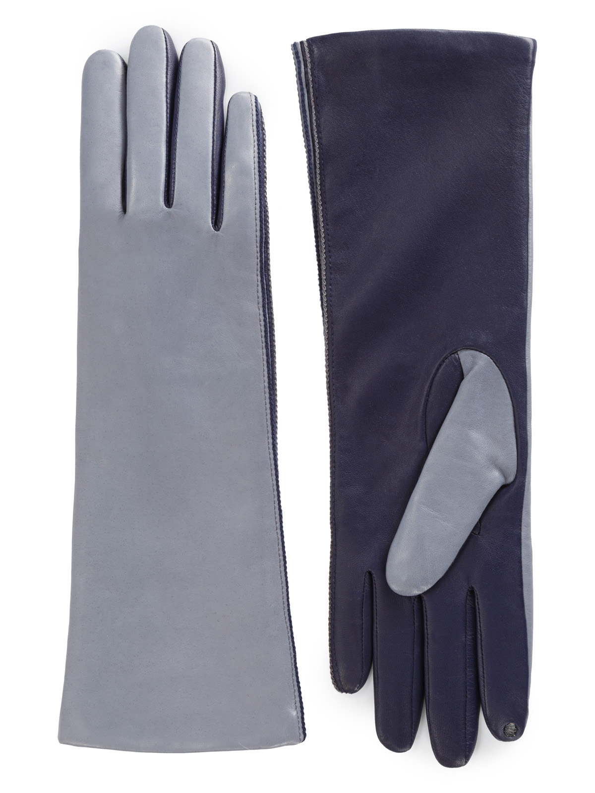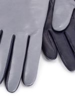 Перчатки торговой марки ELEGANZZA производства Филиппины изготовленный из натуральной кожи ягненка. Двухцветная перчатка украшена контрастными отстрочками по всей длине вдоль мизинца. Подкладка: 50% шерсть + 50% кашемир. Данная модель позволяет работать с сенсорным экраном. Длина манжеты от нижней точки большого пальца до края перчаток - 14 см. Длина пальцев - средняя.