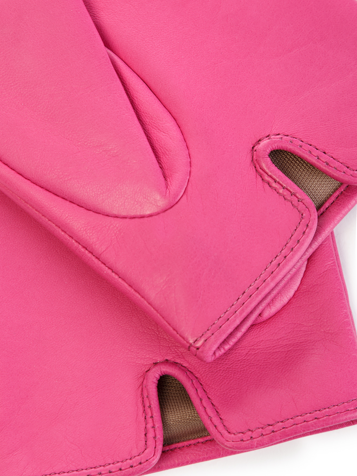 Митенки женские торговой марки ELEGANZZA выполнены из натуральной кожи ягненка производства Италия. Подкладка - шелк. Длина манжеты от нижней точки большого пальца до края перчаток - 1.5 см.