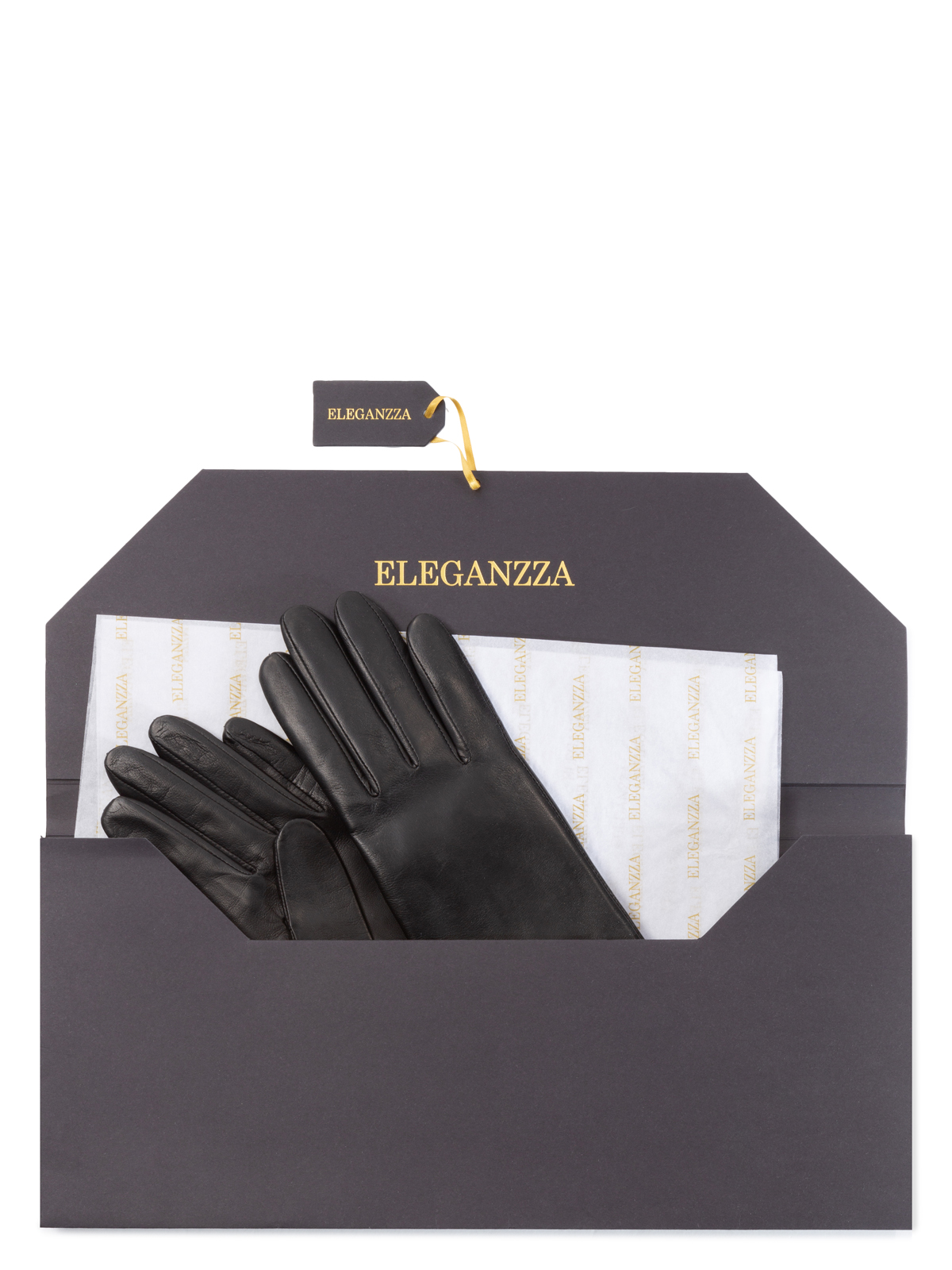 Перчатки торговой марки ELEGANZZA производства Филиппины выполнены из натуральной кожи ягненка. Подкладка: натуральный шелк. Длина манжеты от нижней точки большого пальца до края перчаток - 6.5 см. Длина пальцев - средняя.