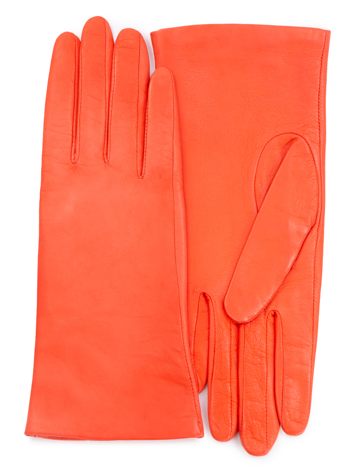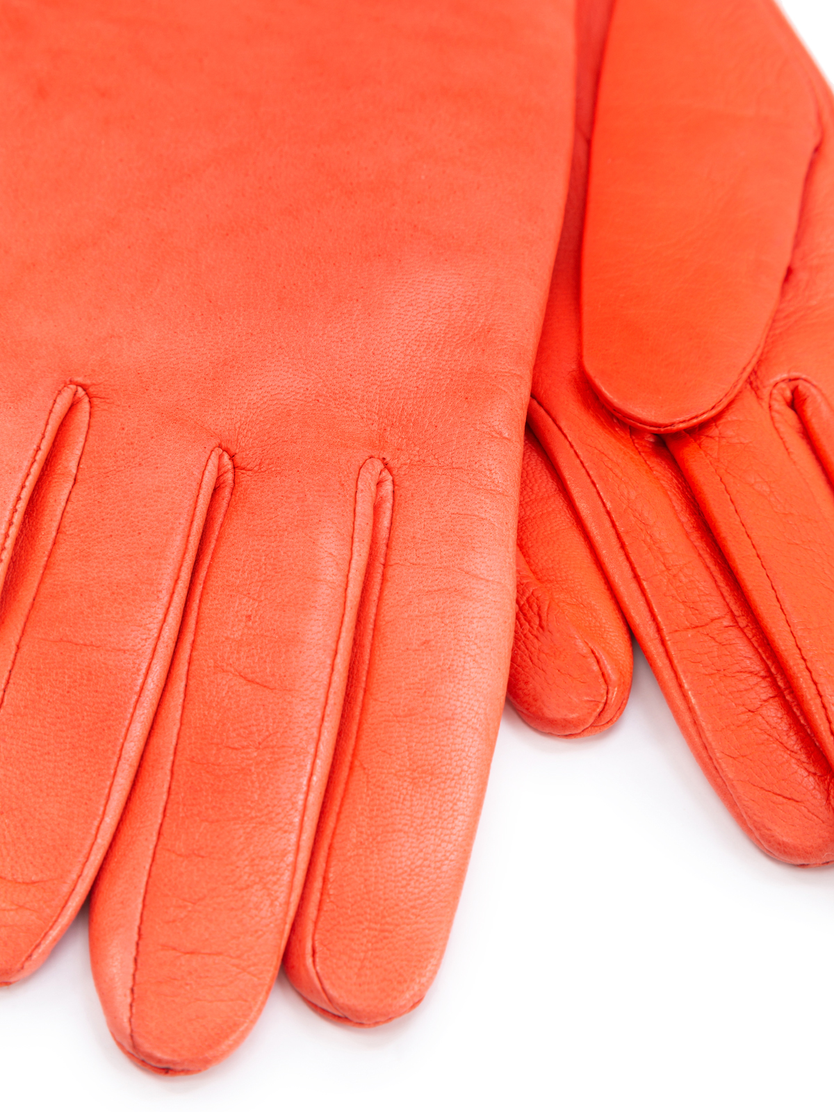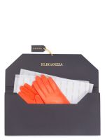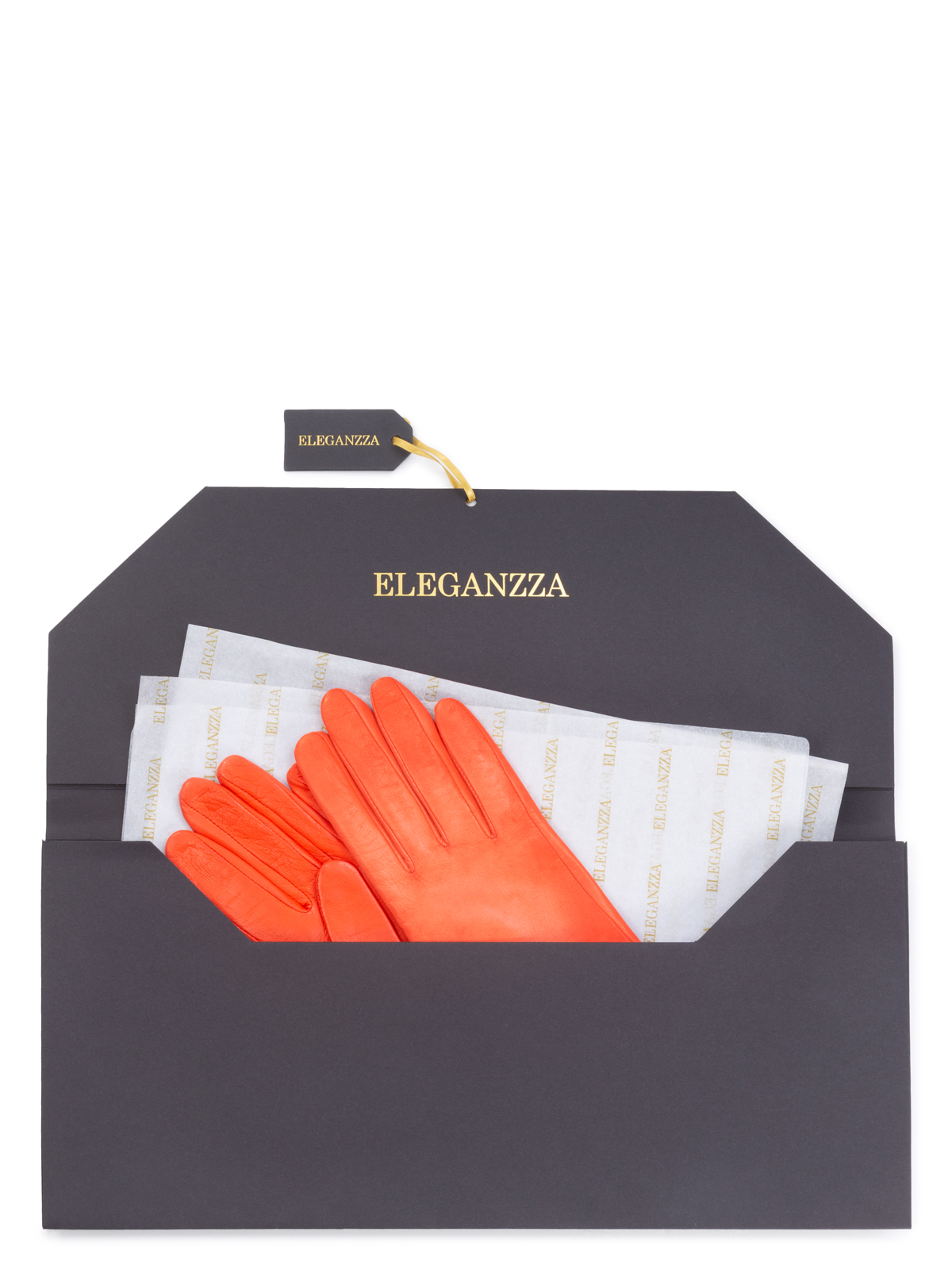 Перчатки женские торговой марки ELEGANZZA производства Филиппины. Выполнены из натуральной кожи ягненка. Подкладка - натуральный шелк. Длина манжеты от нижней точки большого пальца до края перчаток - 6.5 см. Длина пальцев - средняя.