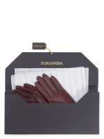 Перчатки женские торговой марки ELEGANZZA производства Филиппины. Выполнены из натуральной кожи ягненка. Подкладка: натуральный шелк. Длина манжеты от нижней точки большого пальца до края перчаток - 6.5 см. Длина пальцев - средняя.
