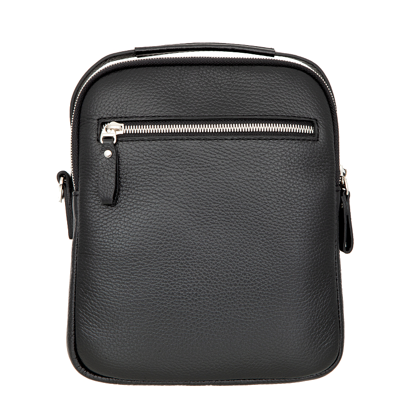 Классический мужской планшет чёрного цвета из мягкой натуральной кожи зернистой фактуры. Состоит из двух независимых отделений на молниях, в одном из которых расположен карман для документов на молнии. Снаружи на лицевой стороне под клапаном карман на молнии. С внешней стороны на лицевой и задней стенках по карману на молниях. Планшет оснащён удобной верхней ручкой и съёмным регулируемым плечевым ремнём на карабинах. Цвет фурнитуры - серебро. Размеры: 24 x 20 x 12 см.
