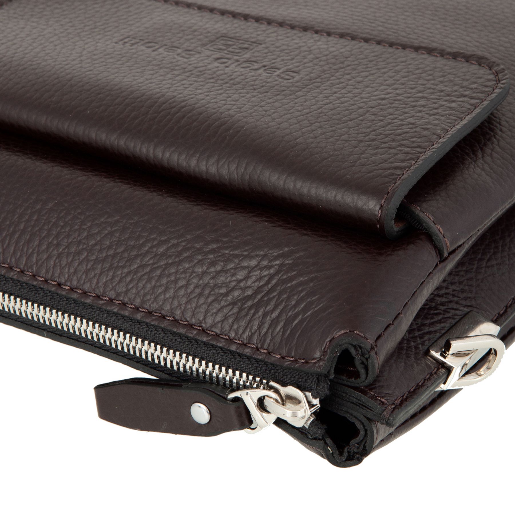 Мужская коричневая сумка-планшет Conti UOMO из натуральной кожи зернистой фактуры. Модель застёгивается на молнию, внутри 2 отделения, разделенные карманом-перегородкой. В одном из отделений располагается карман на молнии. Снаружи, на лицевой стенке карман под клапаном с магнитным фиксатором. На задней стенке карман на молнии. Планшет оснащён регулируемым плечевым ремнём, закрывается на молнию. Цвет фурнитуры - серебро. Размеры: 23 x 19,5 x 7 см.