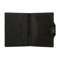 Функциональное портмоне черного цвета, выполненное из высококачественной натуральной кожи с гладкой фактурой. Этот аксессуар идеально сочетает в себе практичность и стиль, предлагая удобное решение для хранения важных документов и карт.