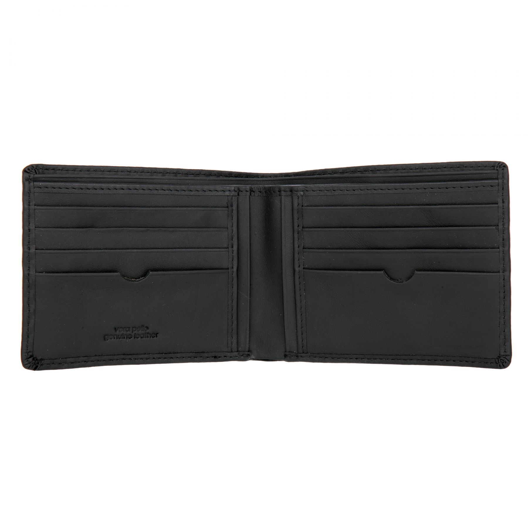 Мужское портмоне из натуральной кожи. Складывается пополам, внутри два отделения для купюр, четыре потайных кармана, восемь карманов для пластиковых карт. Упакован в подарочную коробку.