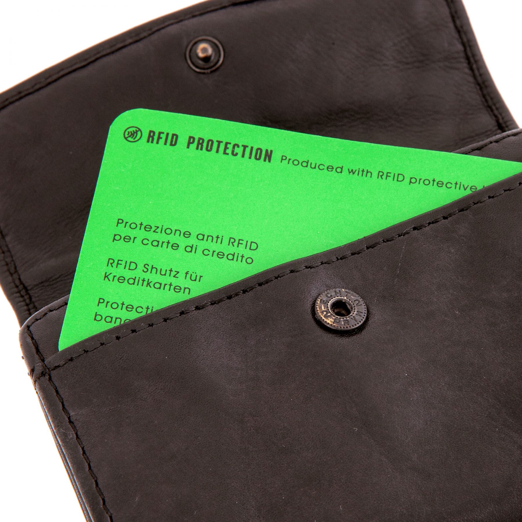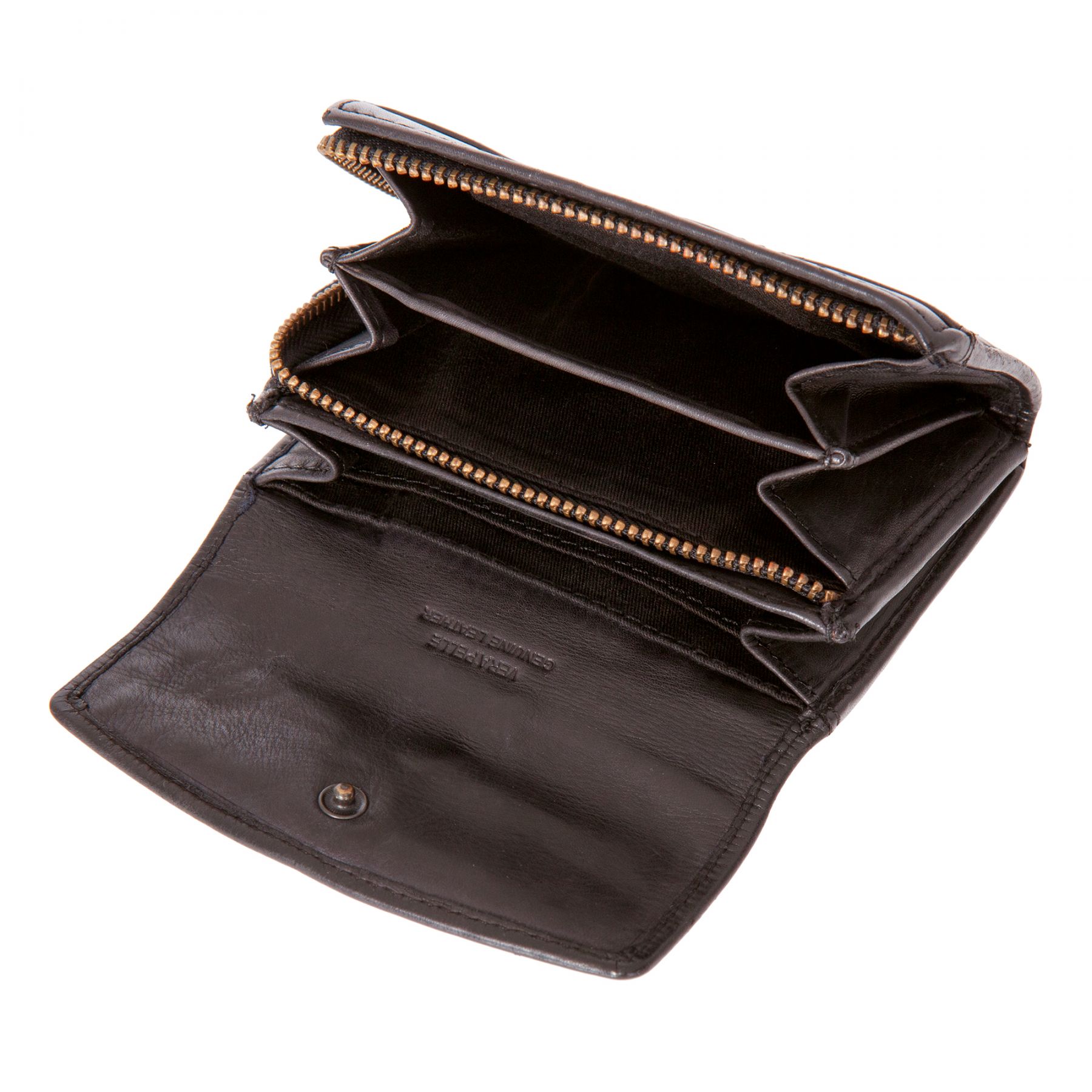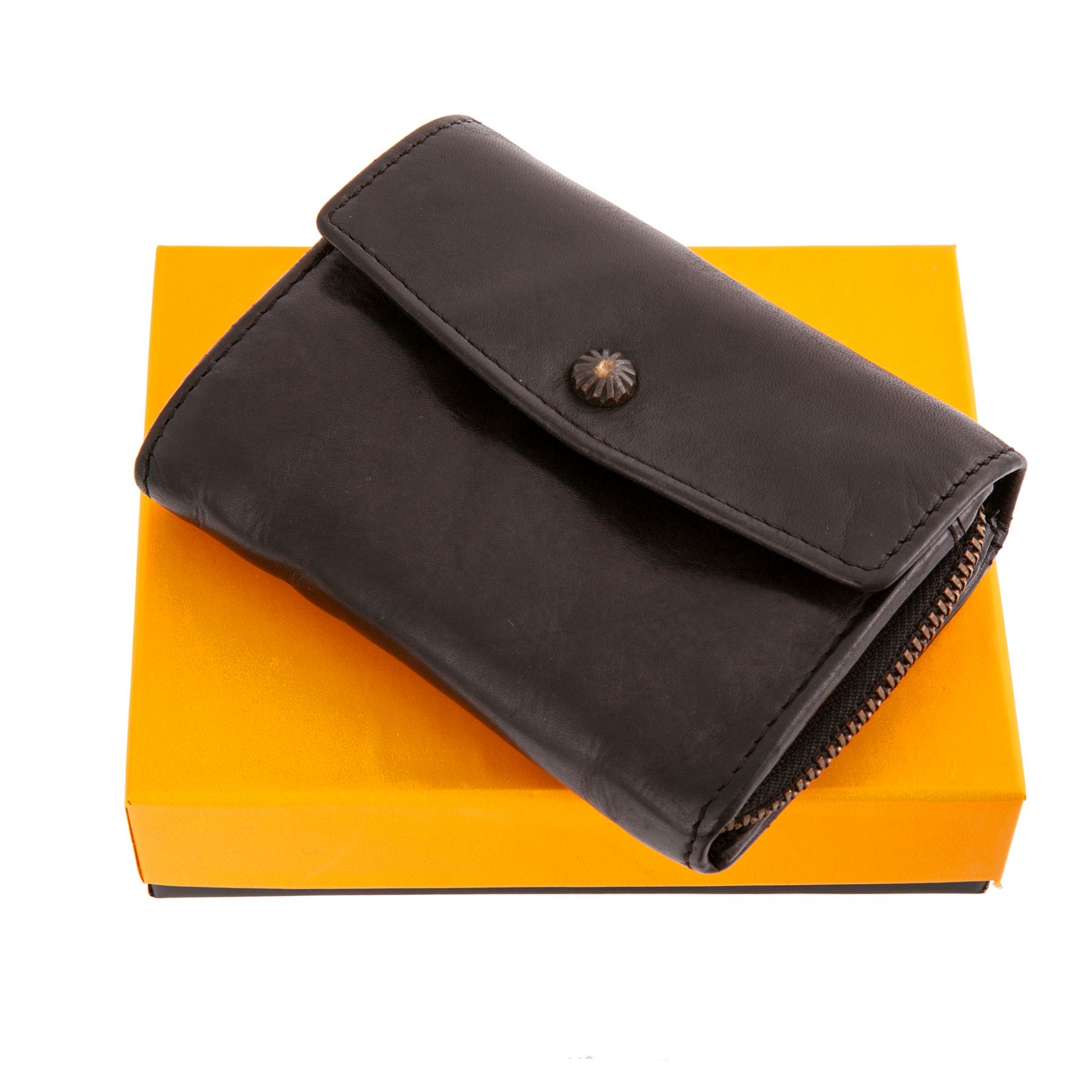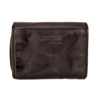 Кожаное портмоне в винтажном стиле от Gianni Conti. Изготовлено из натуральной кожи чёрного цвета. Внутри два отделения для купюр, два кармана для пластиковых карт, двойное отделение для монет на молнии и один потайной карман. Портмоне закрывается клапаном на кнопку. Снаружи на задней стороне расположен продольный открытый карман. Упаковано в подарочную коробку.