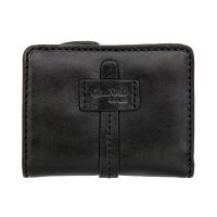 Женское кожаное портмоне чёрного цвета от бренда Gianni Conti. Портмоне складывается пополам и закрывается на кнопку. Внутри одно отделение для купюр, пять потайных карманов и шесть кармашков для пластиковых карт. Снаружи двойное отделение для монет на молнии. Оснащено RFID Protection (защитным слоем от считывания карт).
