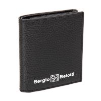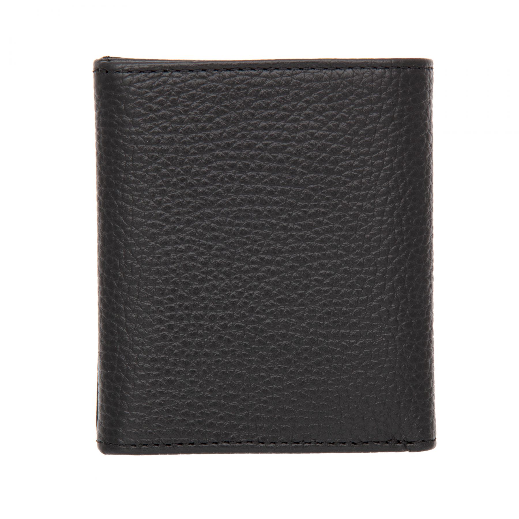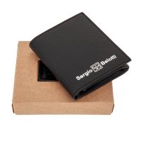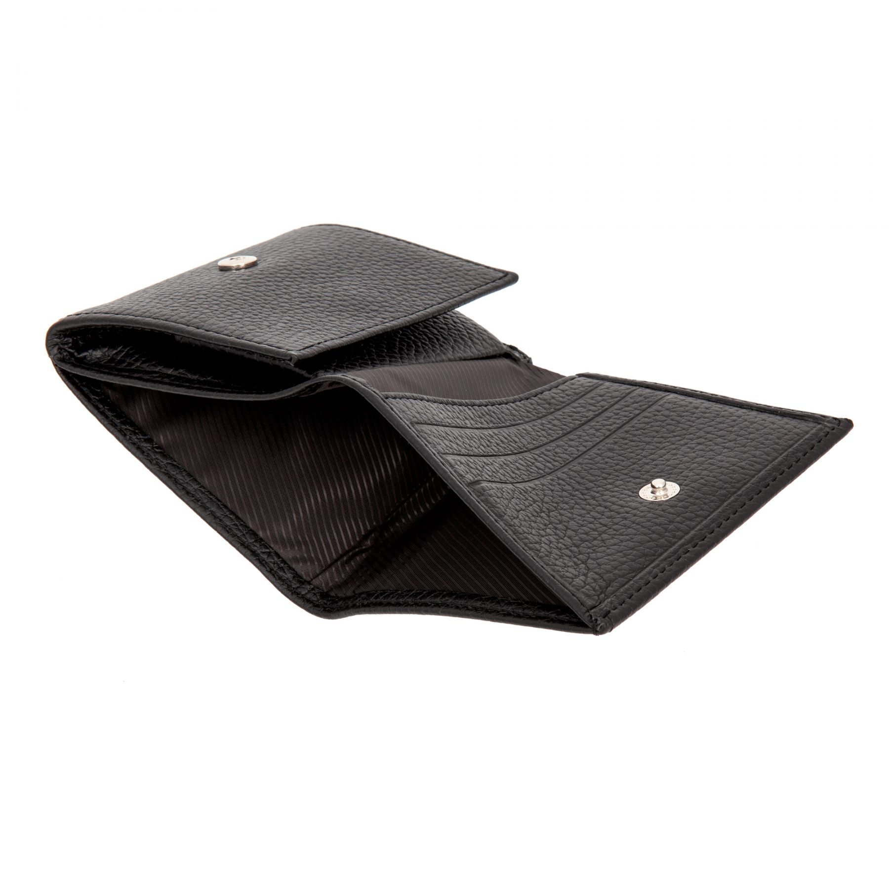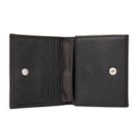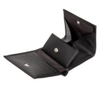 Миниатюрное женское чёрное портмоне из натуральной кожи. Внутри одно отделение для купюр, четыре кармашка для пластиковых карт и карман для монет на кнопке. Отличный вариант для маленькой сумочки или клатча. Размеры: 10 х 9 х 3 см.
