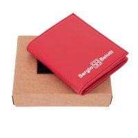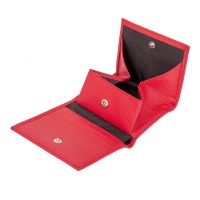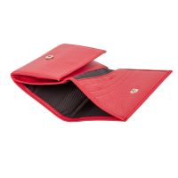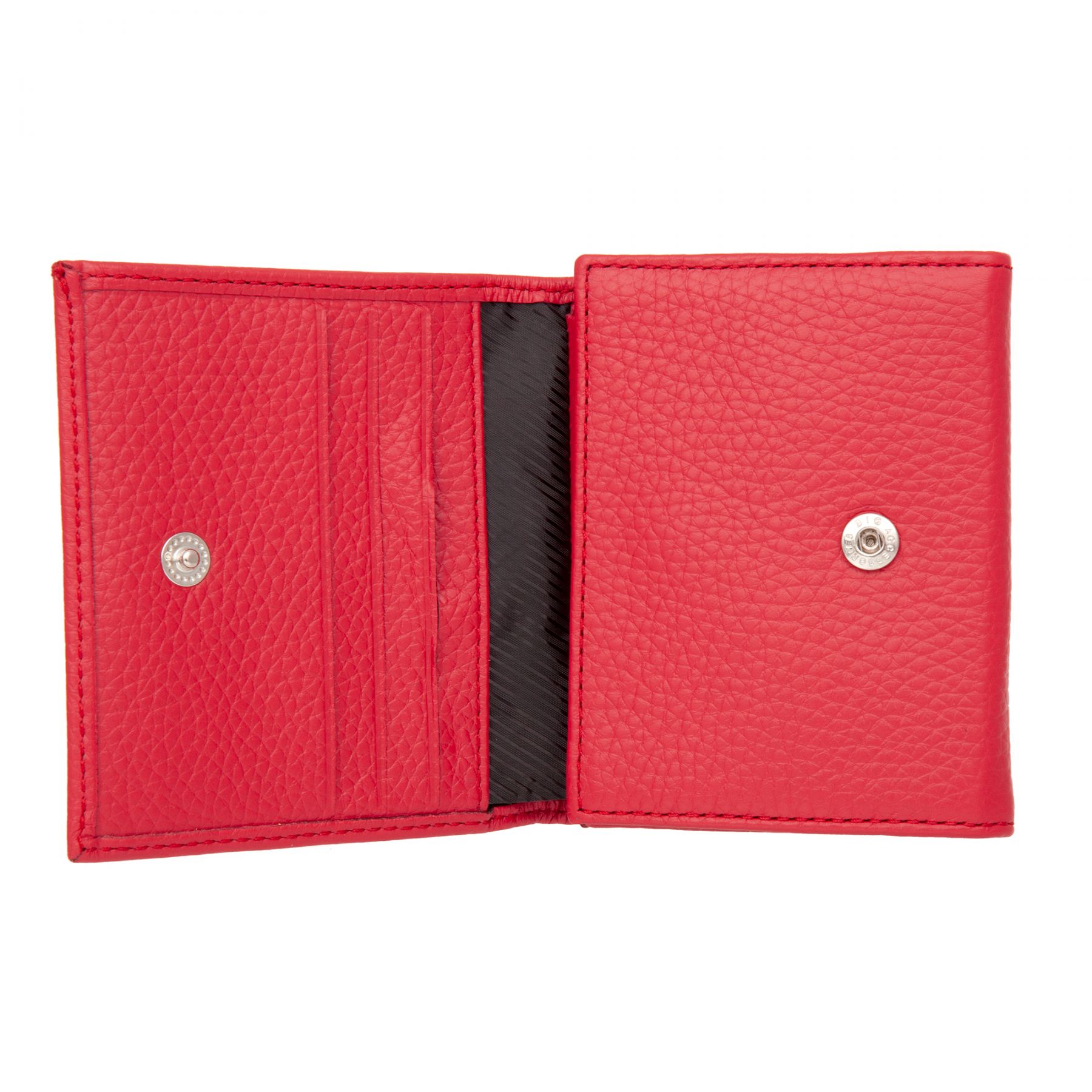Миниатюрное женское красное портмоне из натуральной кожи. Внутри одно отделение для купюр, четыре кармашка для пластиковых карт и карман для монет на кнопке. Отличный вариант для маленькой сумочки или клатча. Размеры: 10 х 9 х 3 см.