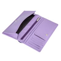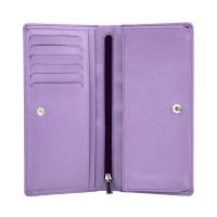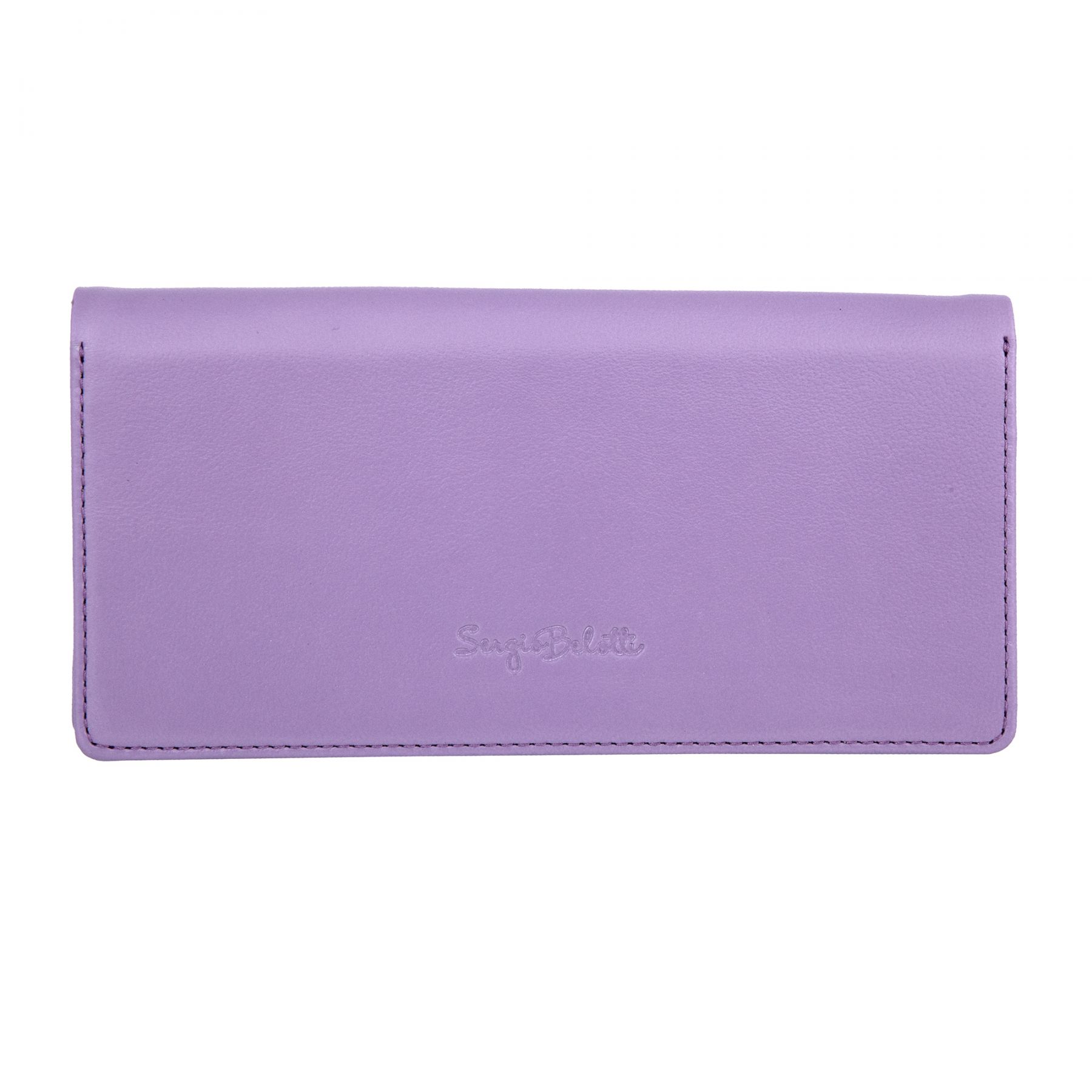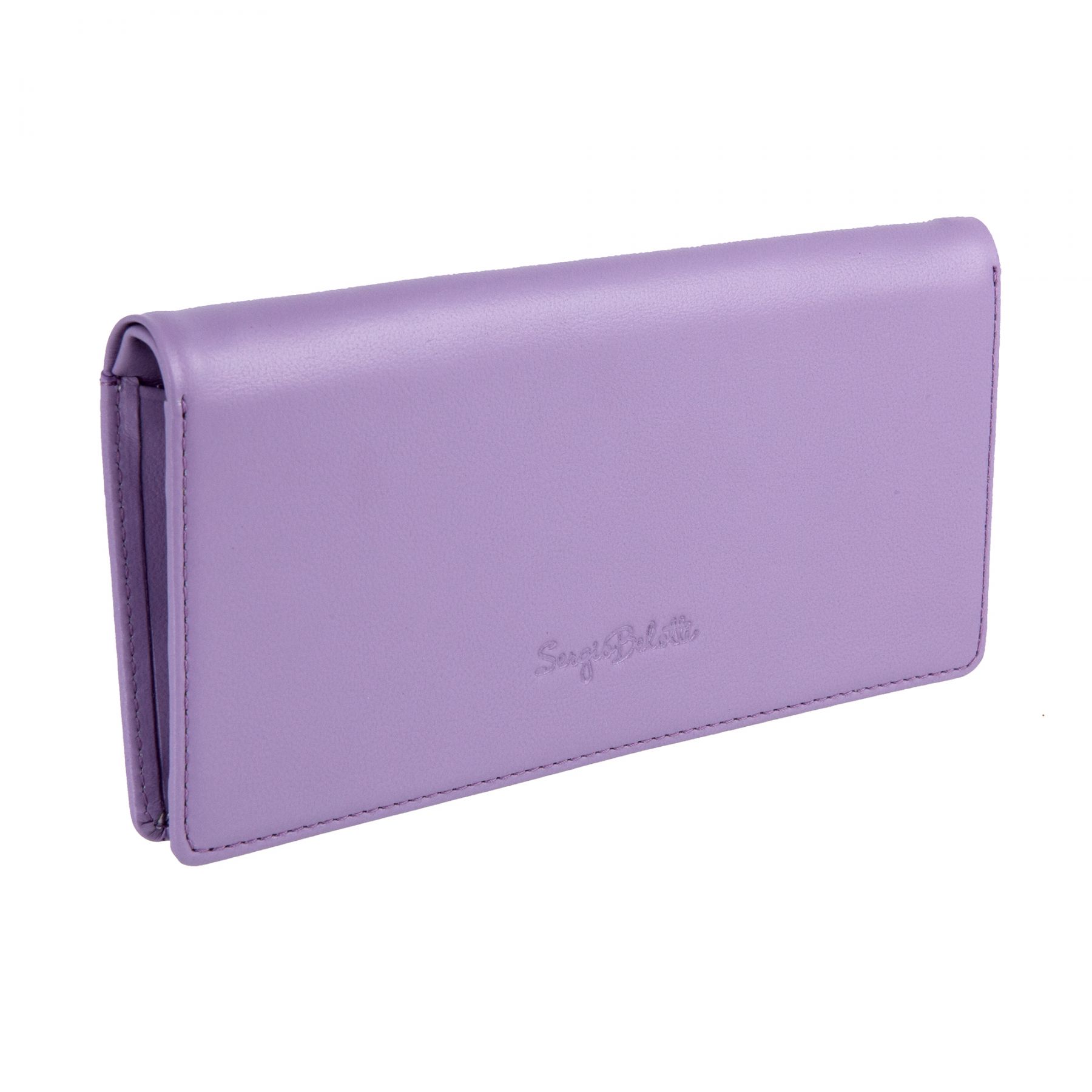 Кошелек из мягкой натуральной кожи сиреневого цвета. Внутри одно отделение для купюр, карман для монет на молнии, два отдела для документов и шесть кармашков для пластиковых карт. Закрывается широким клапаном на кнопке. Товар упакован в подарочную коробку от бренда Sergio Belotti. Размеры: 9.5 х 19 х 2 см.