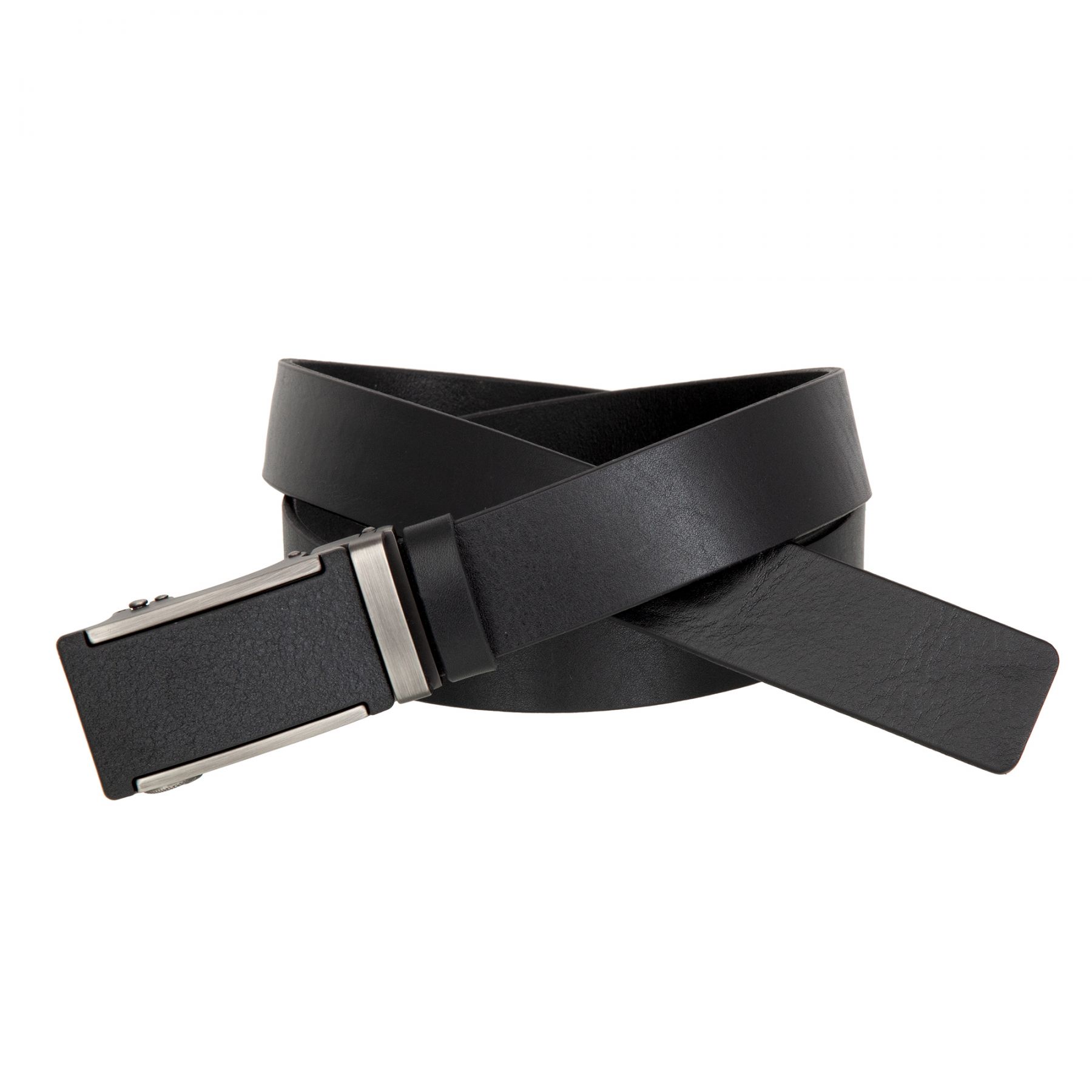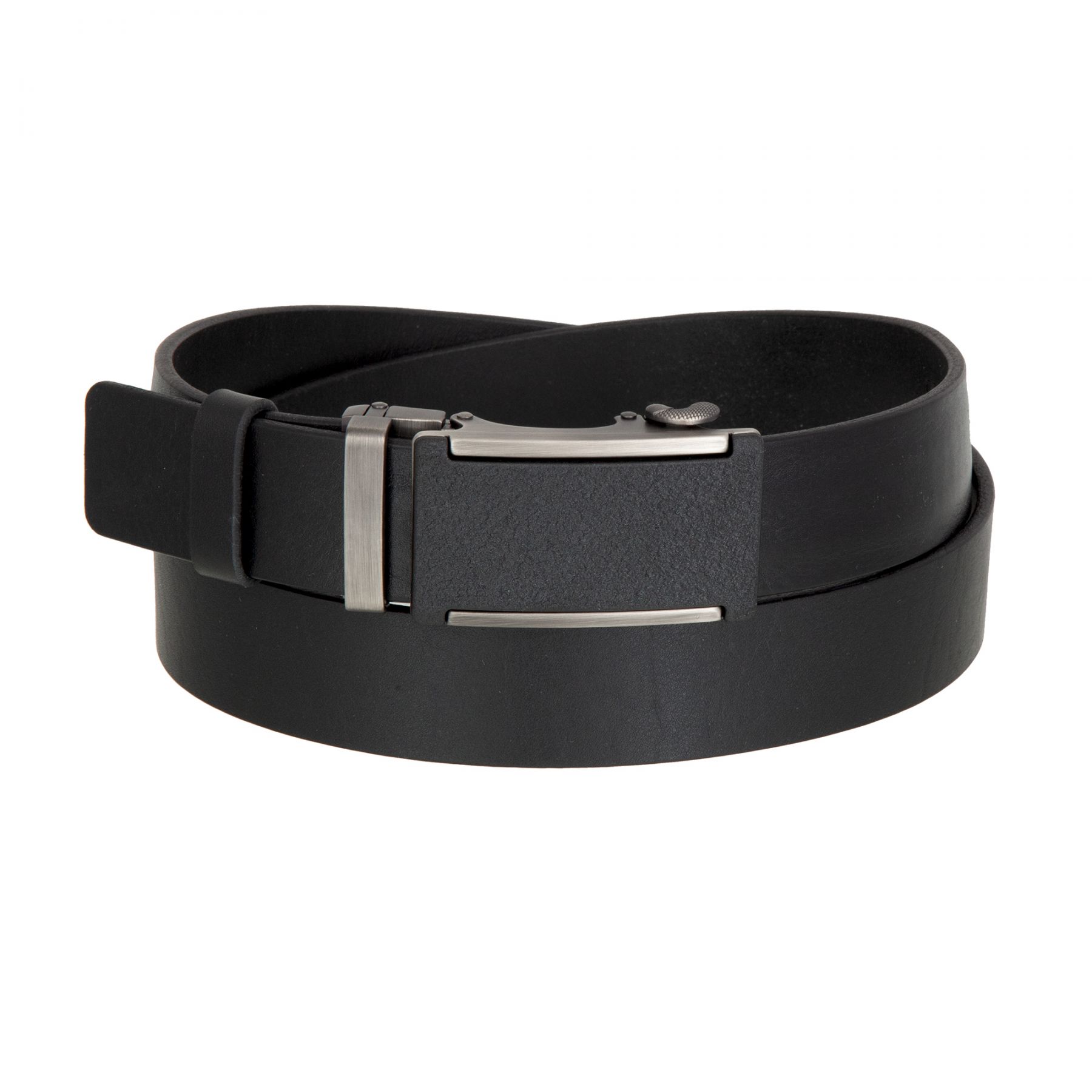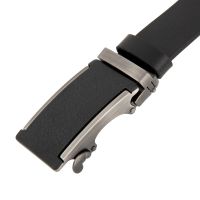 Чёрный мужской брючный ремень с автоматической пряжкой. Выполнен из высококачественной матовой кожи толщиной 3,5 мм. Комбинированная чёрная пряжка-автомат с элементами цвета чернёного серебра, 7 * 4 см. Подарочная упаковка.