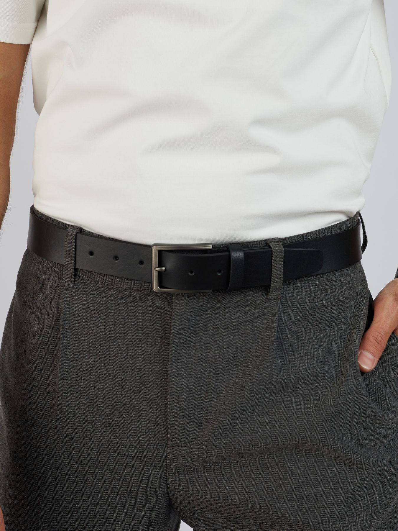 Брючный ремень из высококачественной натуральной кожи шириной 3,3 см. Ремень имеет 6 отверстий для регулировки и винтовое крепление для укорачивания. Размер пряжки: 5,5 х 4,5 см. Поставляется в фирменном мешочке. Отличный подарок на 23 февраля, день рождения и новый год.