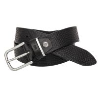 Мужской ремень для джинсов. Особенностью этой модели является натуральное кожаное полотно высокого качества с гравировкой по всей длине. Ремень укорачивается по длине. Пряжка 5,5 х 5 см. Поставляется в фирменном мешочке.